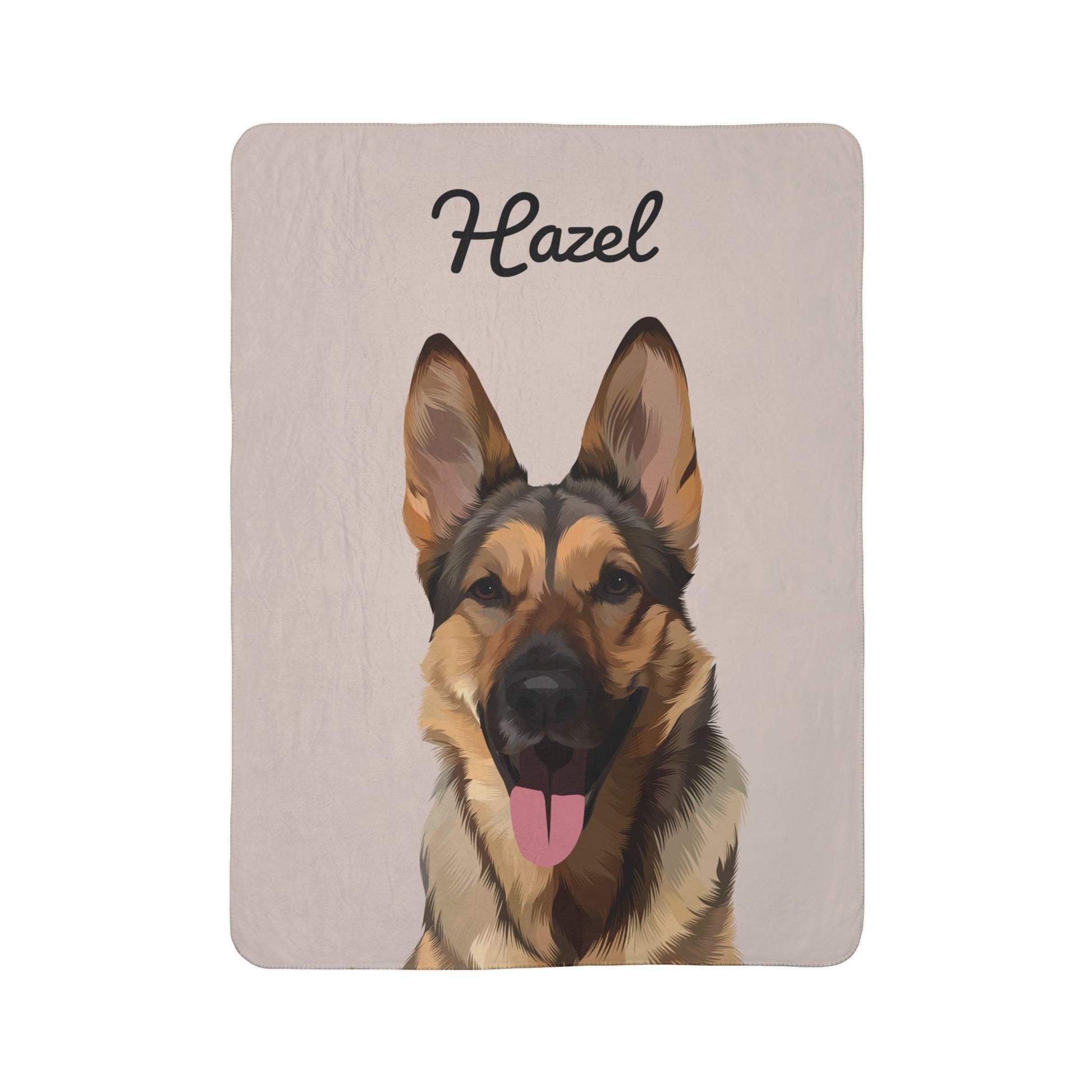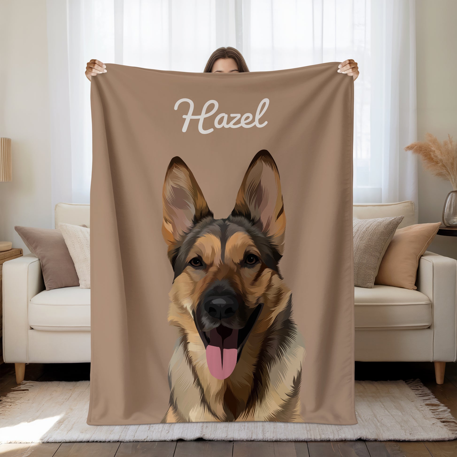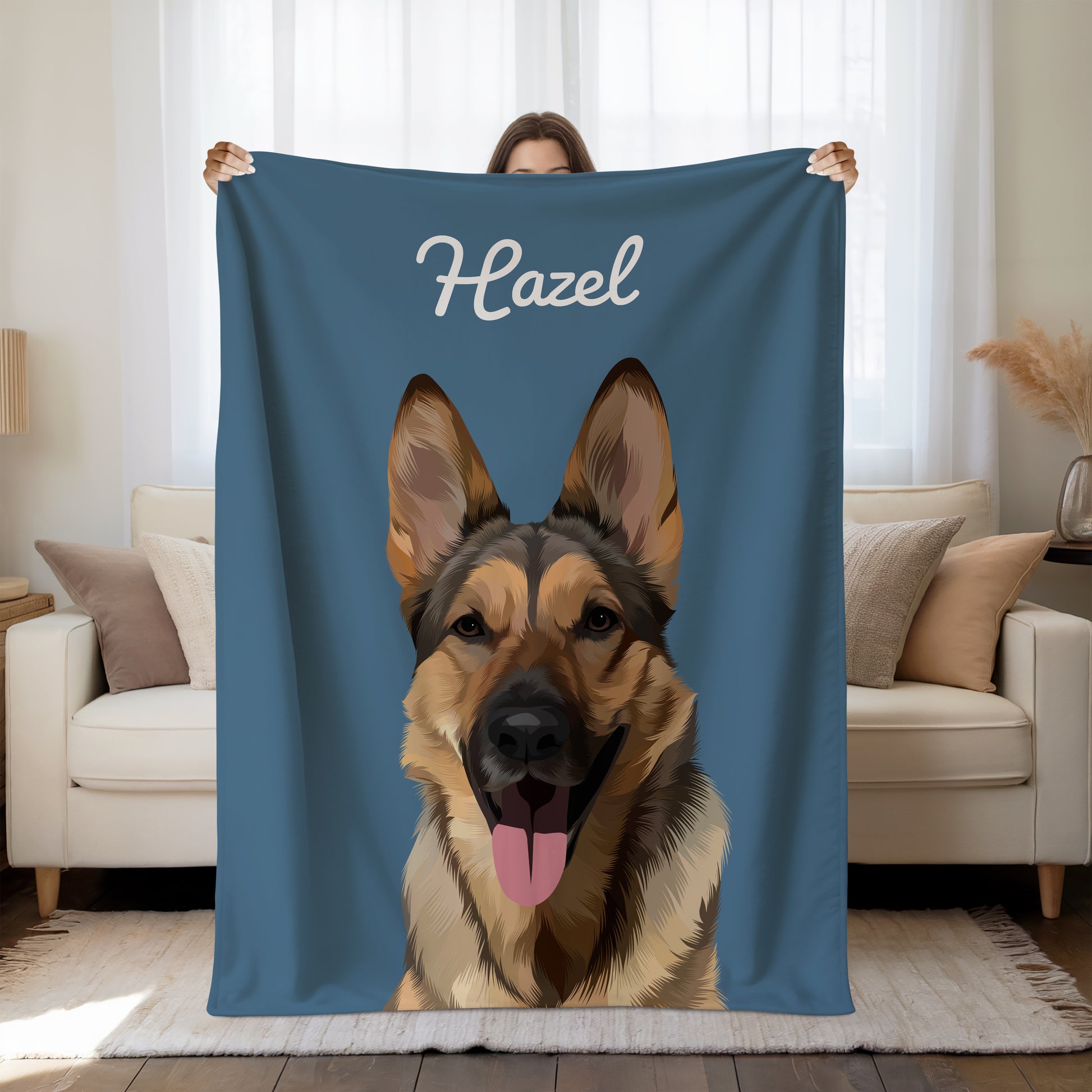 Turn your Shepherd’s photo into a one-of-a-kind art blanket. This custom plush blanket features your dog’s portrait in our signature modern illustration style—soft, vibrant, and made for snuggles. Lightweight and cozy enough for you or your pup.