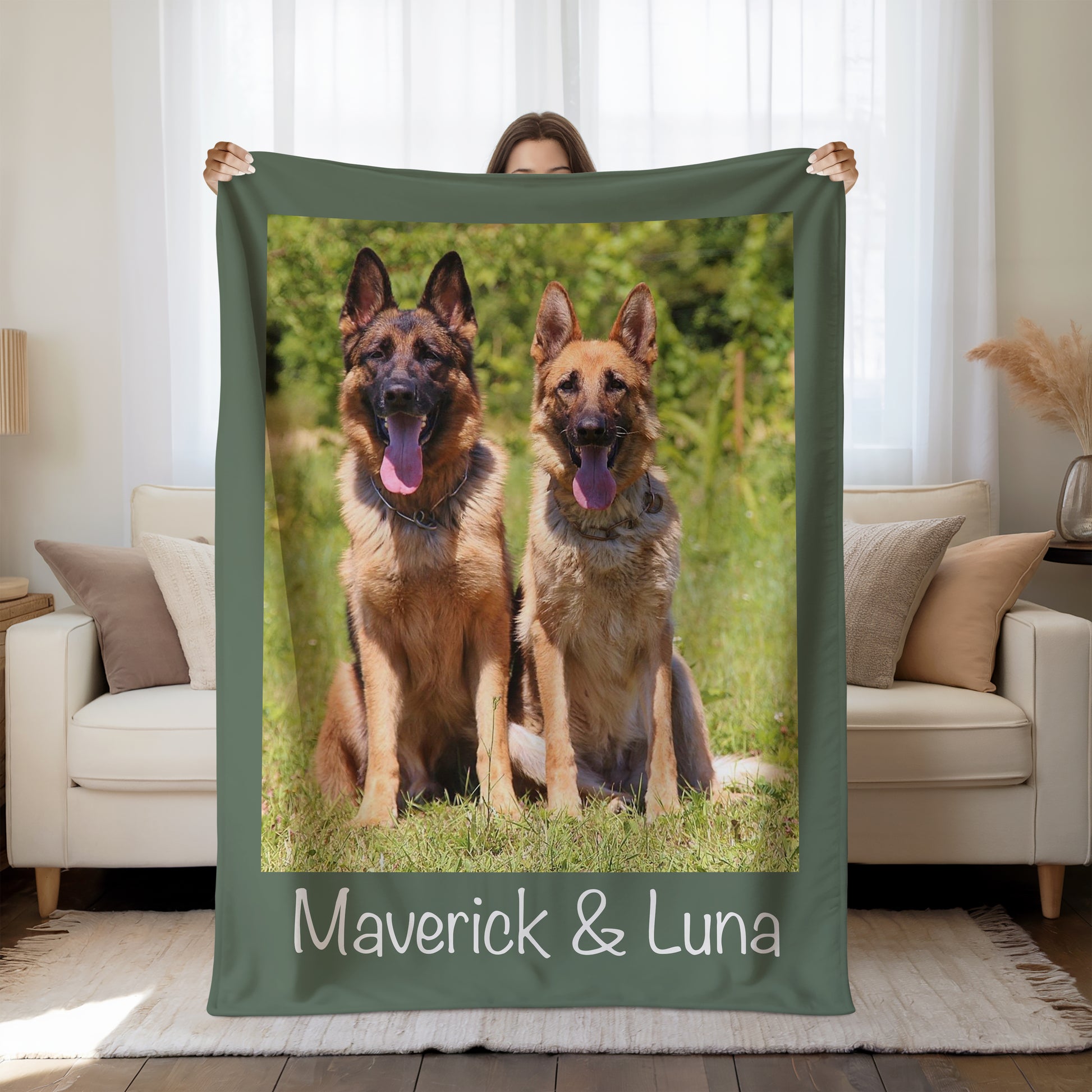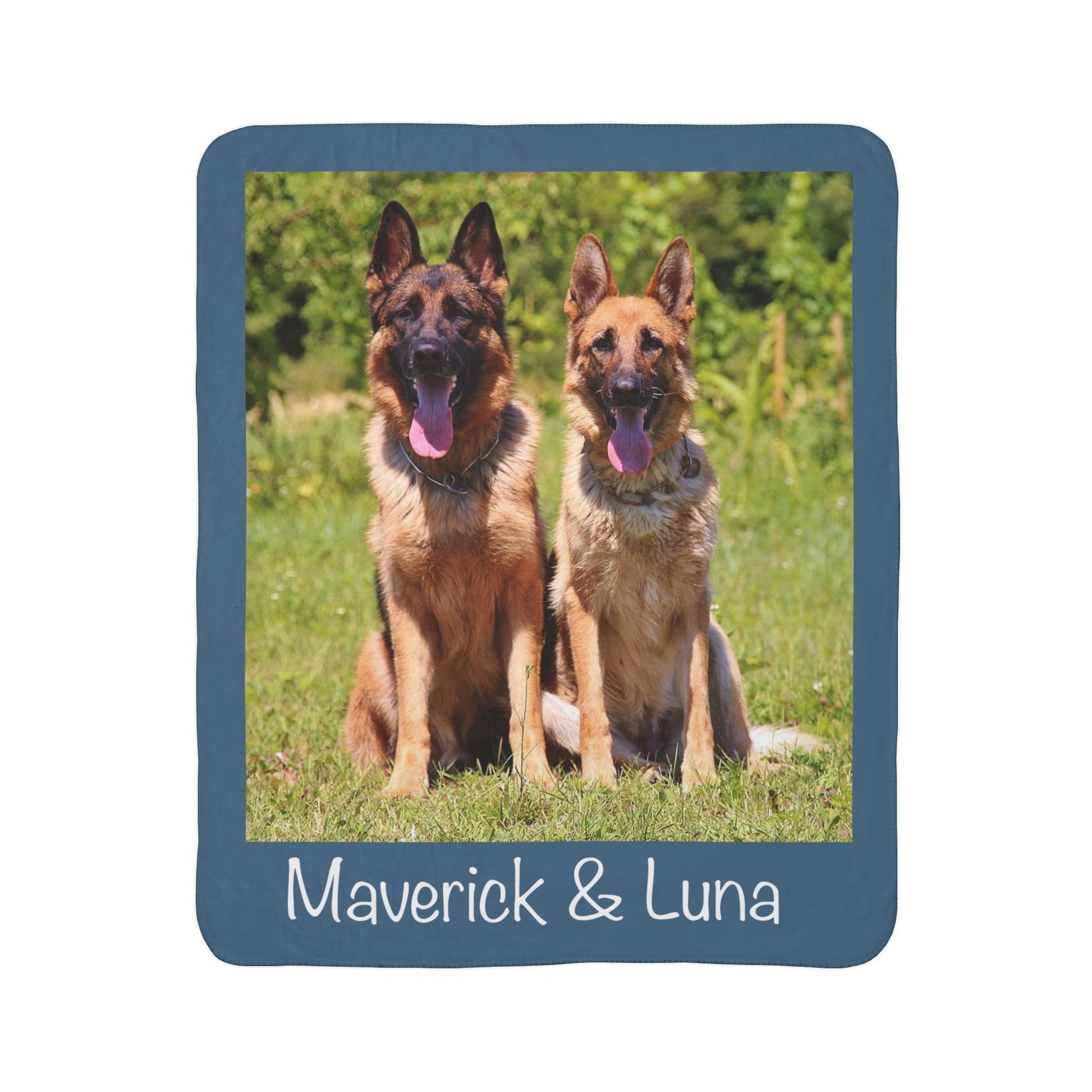 Turn your favorite Shepherd photo into a warm, snuggle-worthy statement piece. Each sherpa blanket features a vivid, one-sided print of your photo with names below—on ultra-soft fleece backed with thick, plush sherpa. It’s personal, cozy, and made for those who take their Shepherd love seriously.