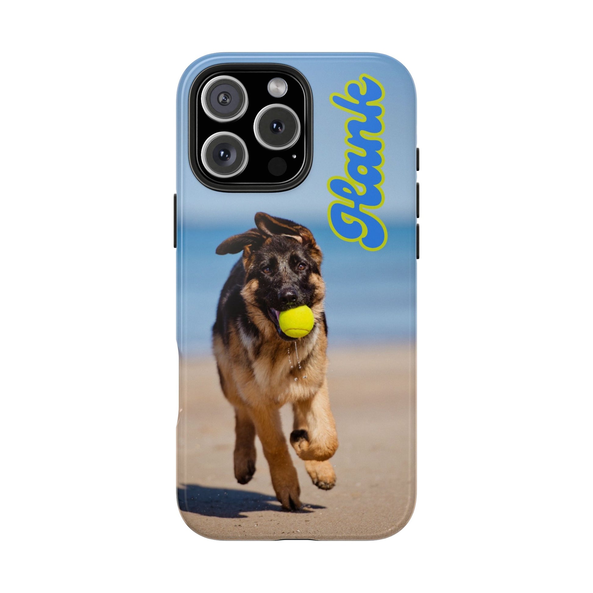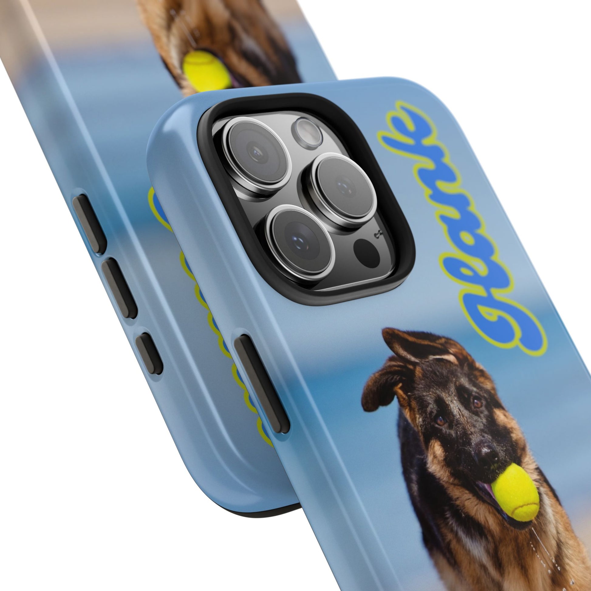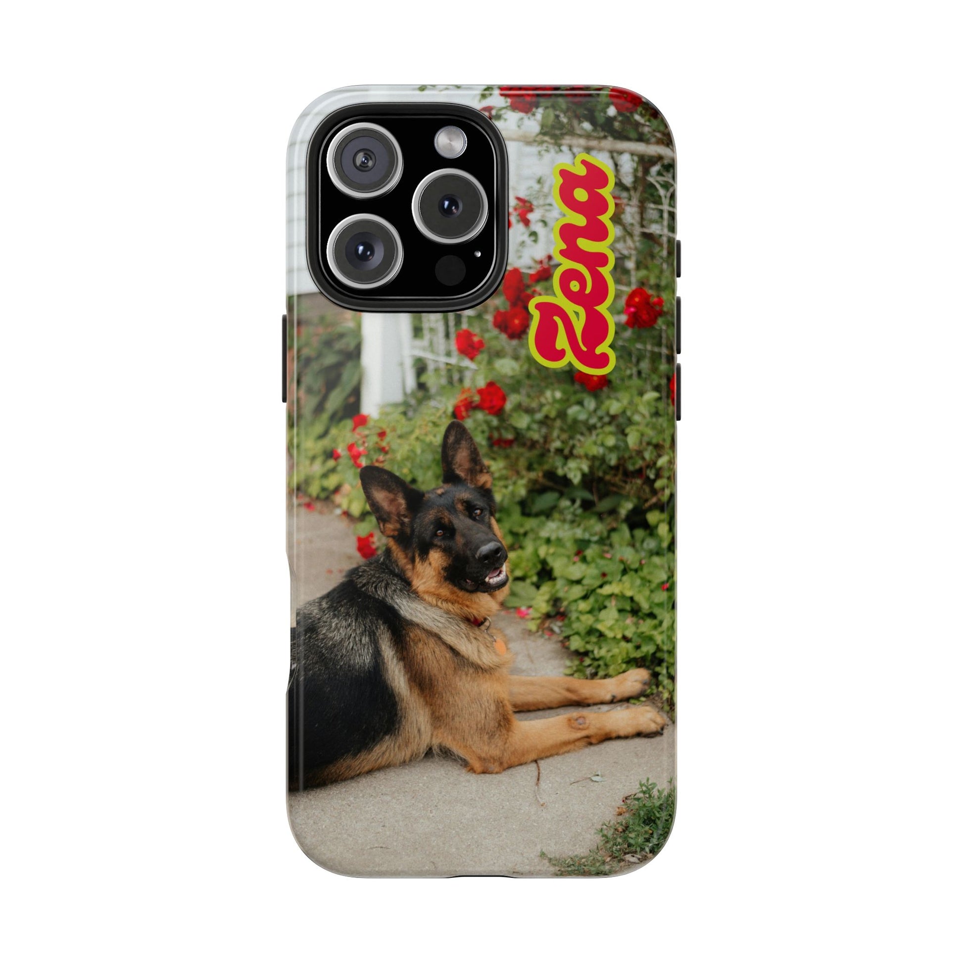 Because your camera roll is already full of your German Shepherd's antics — now your phone can match their energy. This custom iPhone case features your favorite GSD photo and their name in a bold, playful script. Whether your pup’s catching waves or chilling in the backyard, this case brings their personality to your phone in full color. And don’t worry — it’s not just pretty. With its dual-layer protection, this glossy case keeps your phone safe from daily drops, bumps, and zoomies.