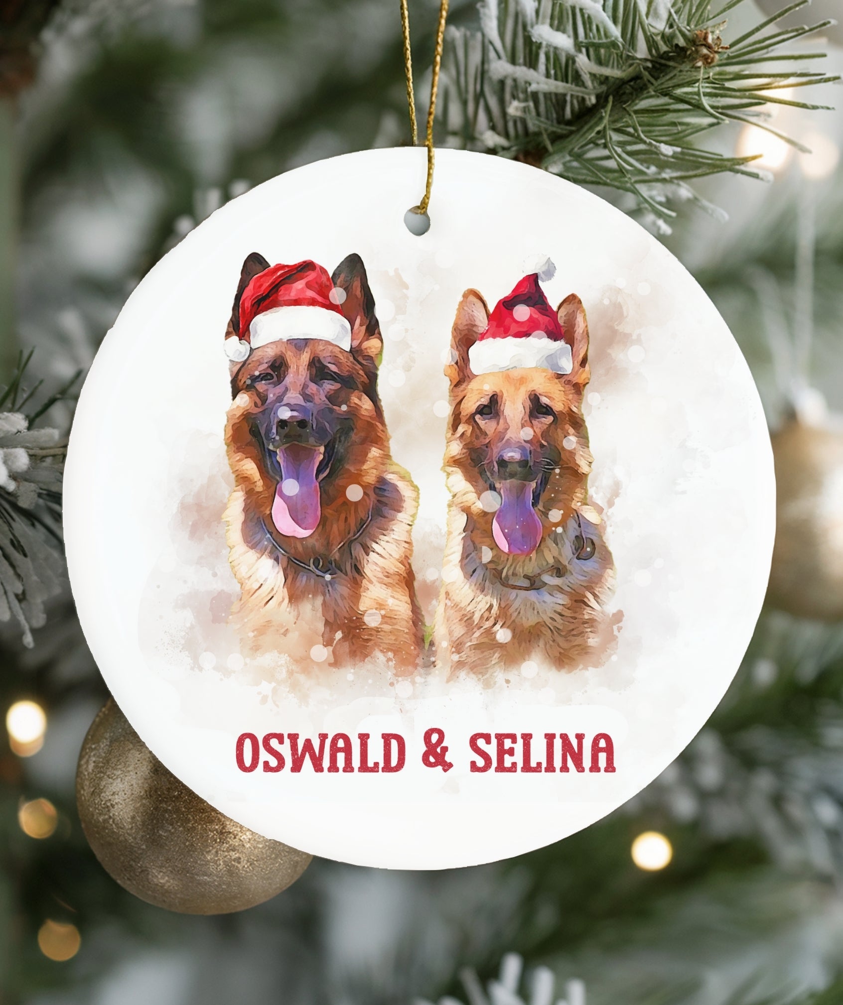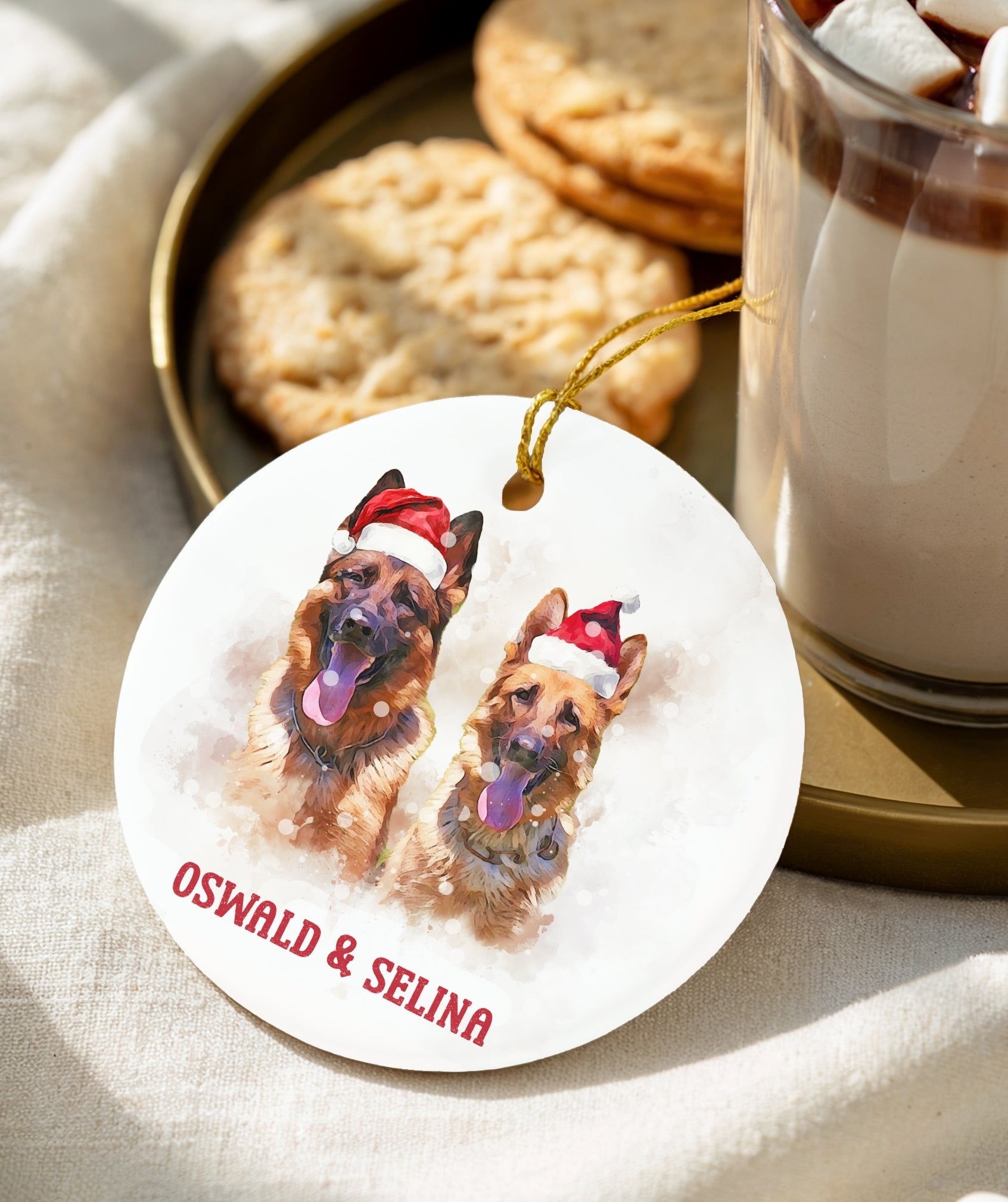 Turn your Shepherds’ holiday photo into a beautiful watercolor keepsake. This custom snow scene ornament captures their joy and loyalty in a festive, artistic style made just for you. Ideal for one or two dogs portraits.