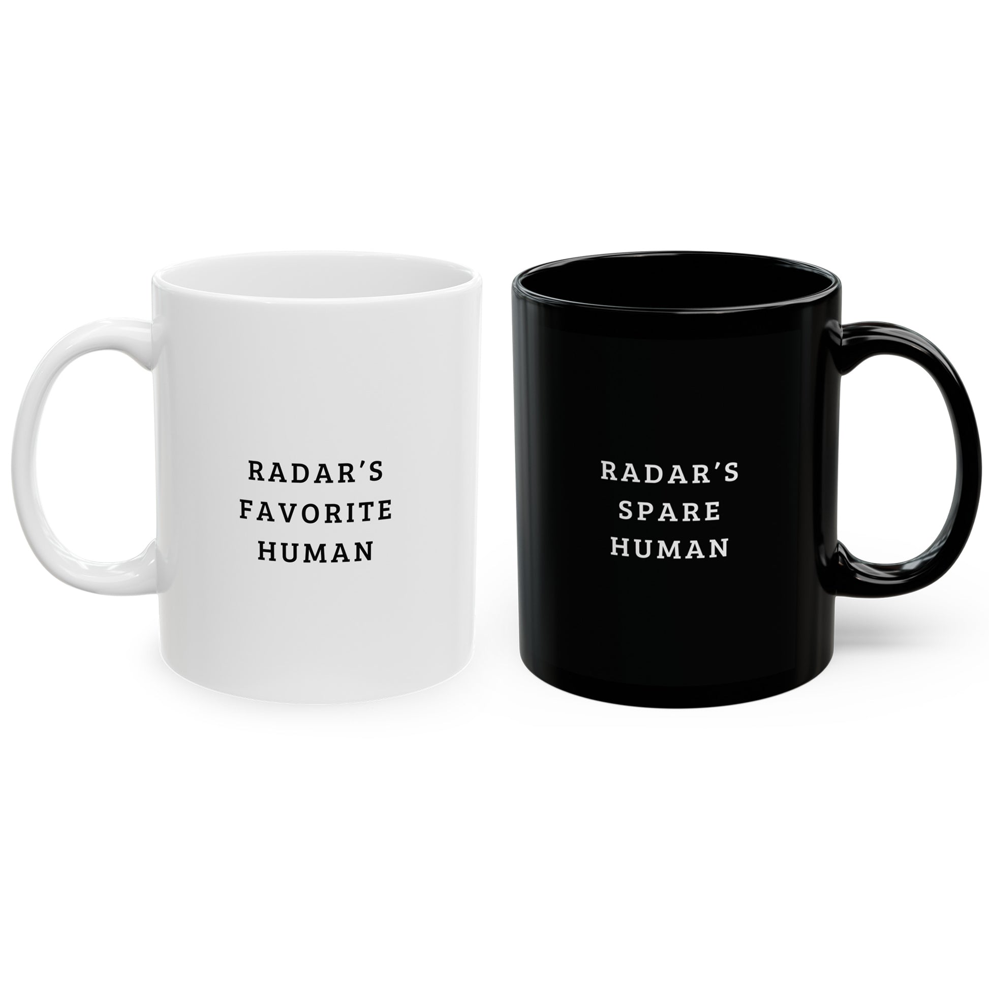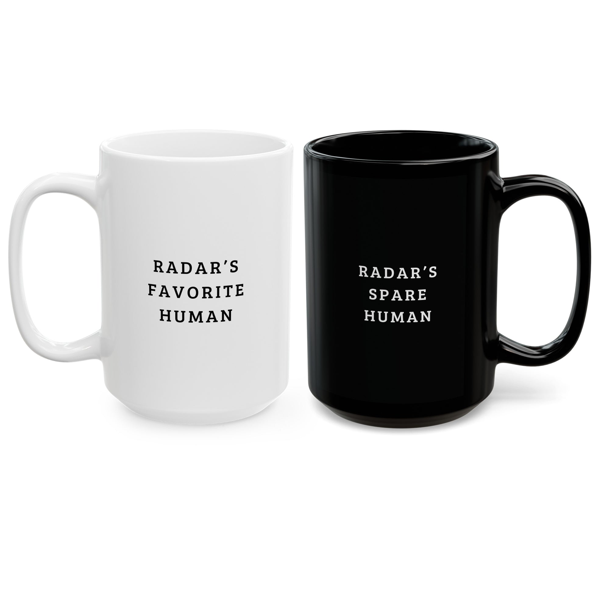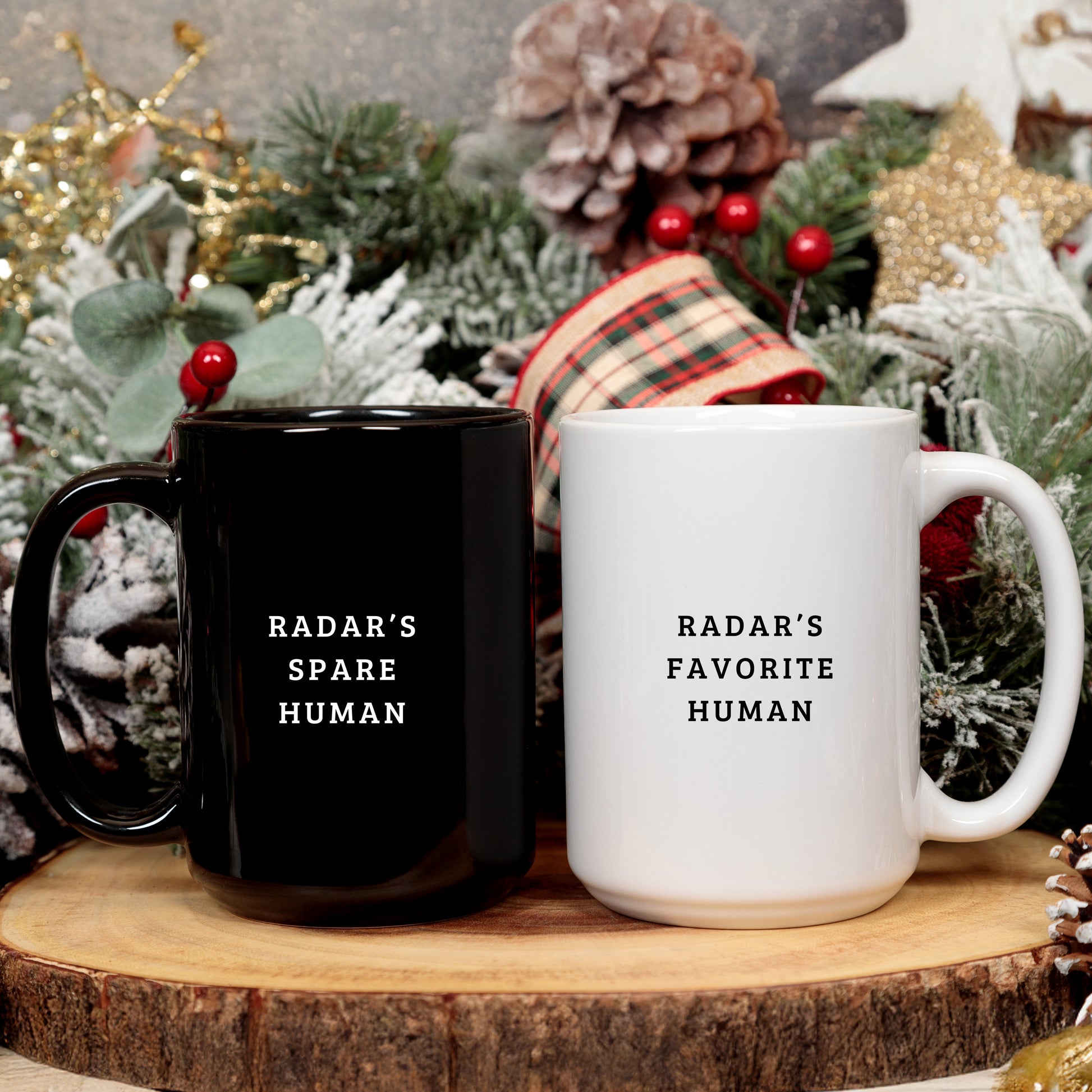Every dog has their go-to human—and their backup plan. This playful 2-mug set includes both Radar’s Favorite Human and Radar’s Spare Human designs, customized with your dog’s name.