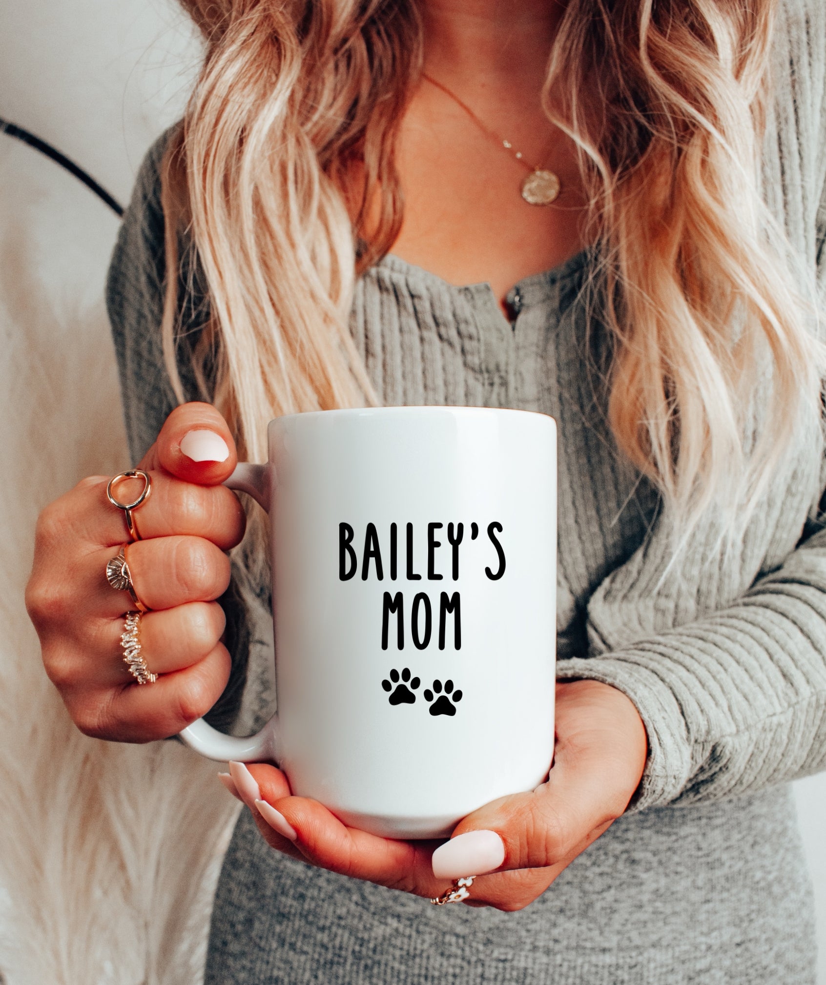 Personalized – GSD Name | Minimalist handwritten script with “Mom” and pawprints