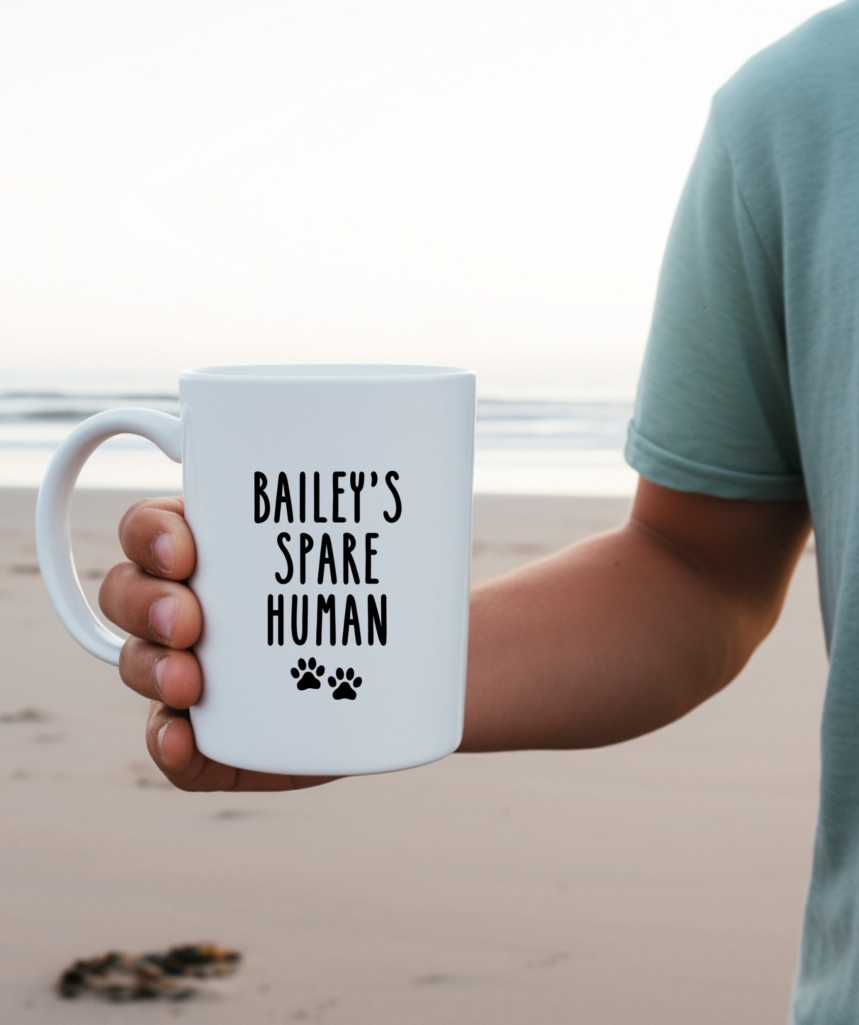 Not the favorite? That’s okay—you’re still essential support staff. This personalized mug features your German Shepherd’s name above the phrase “Spare Human,” complete with two pawprints and a playful typeface. A perfect gift for the second-in-command.