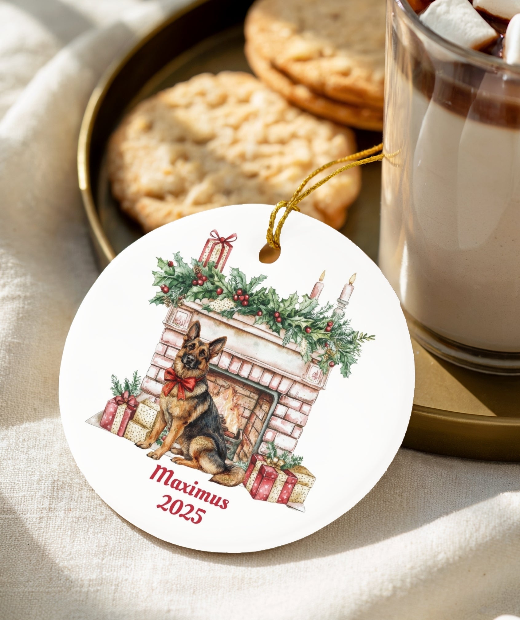 Warm up your holiday tree with this heartwarming fireside ornament. Featuring a classic Shepherd by a glowing hearth, it’s the perfect keepsake for cozy Christmas memories.