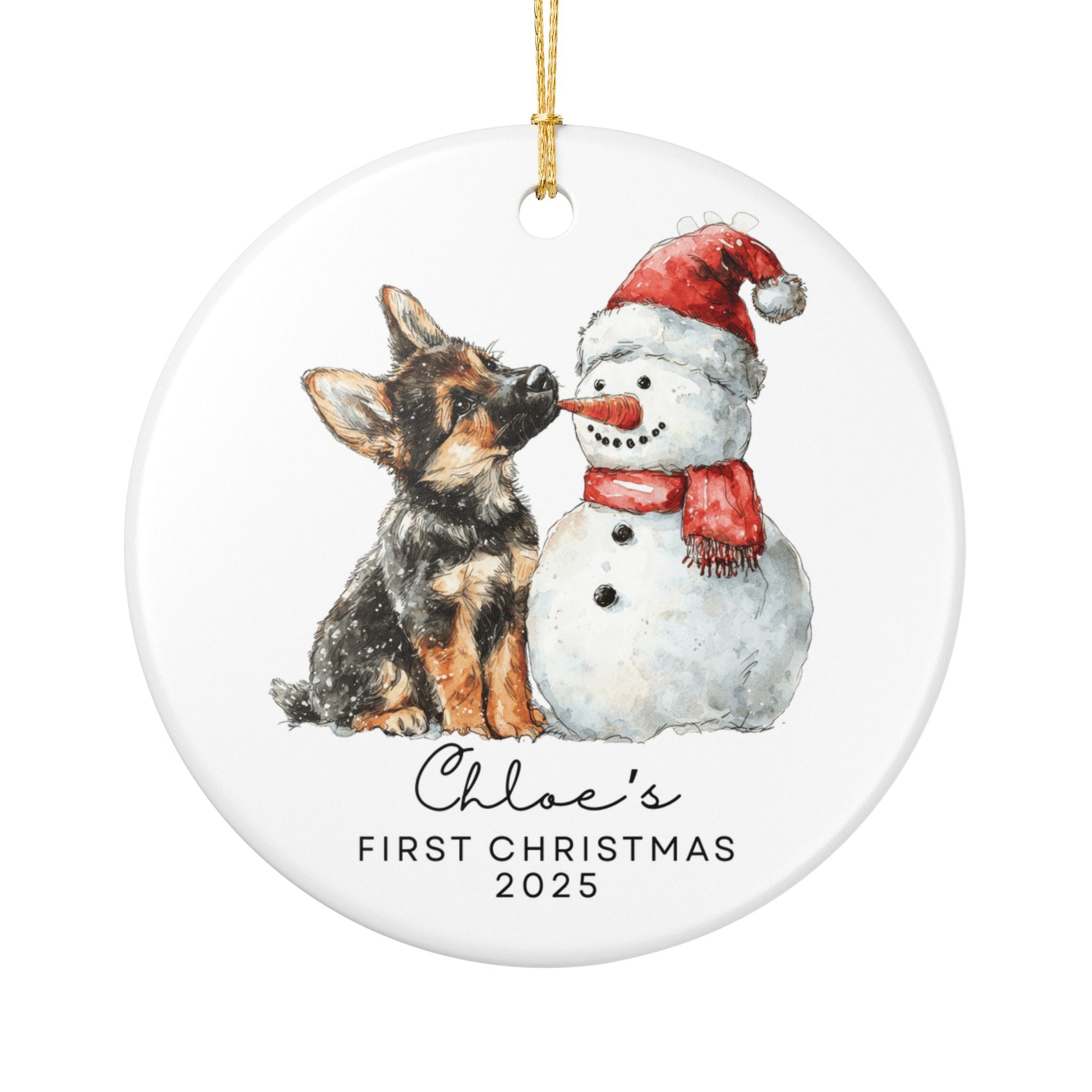 Personalized – GSD Name & Year | Watercolor puppy design celebrating your Shepherd’s first Christmas