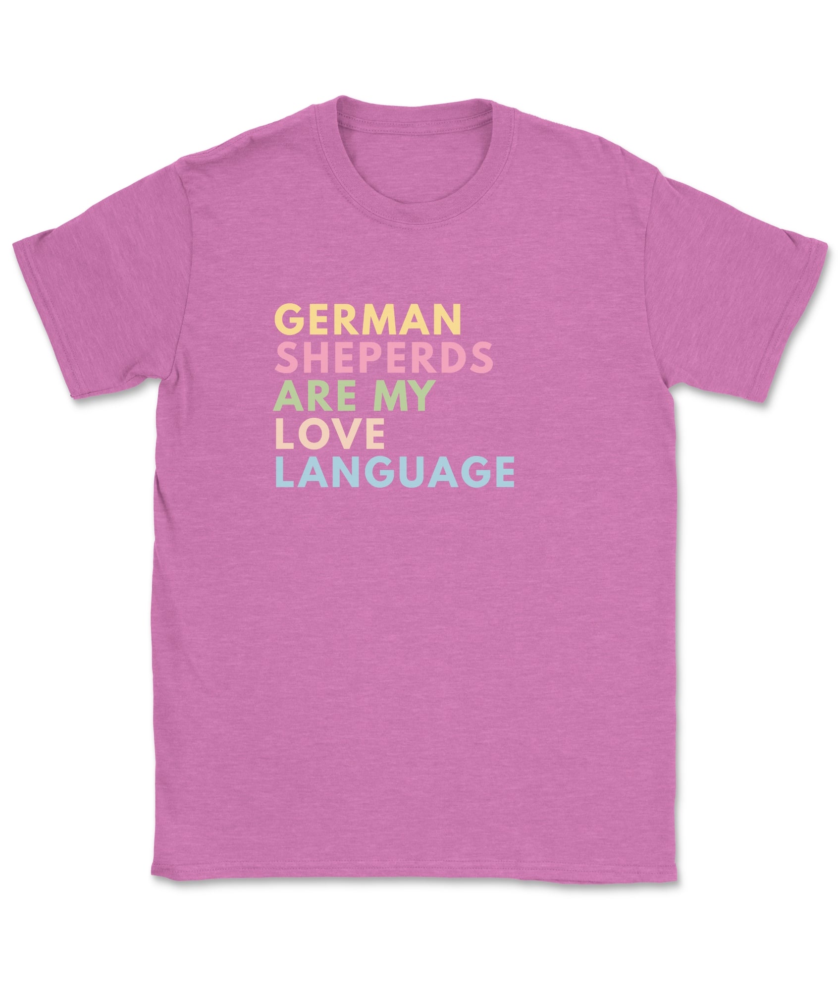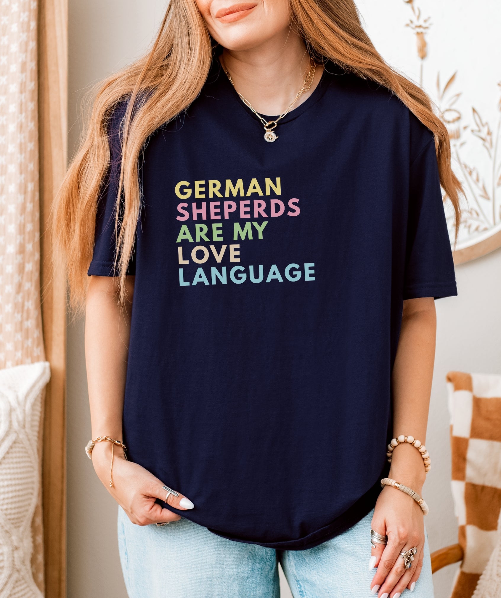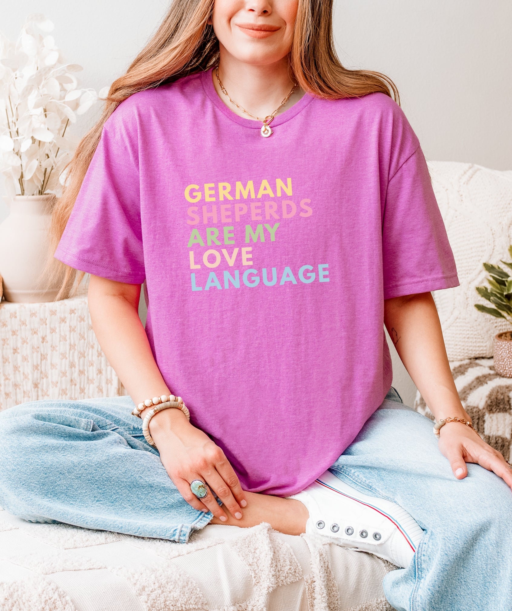 Pastel text colors. Sunny days. Major shepherd love energy.