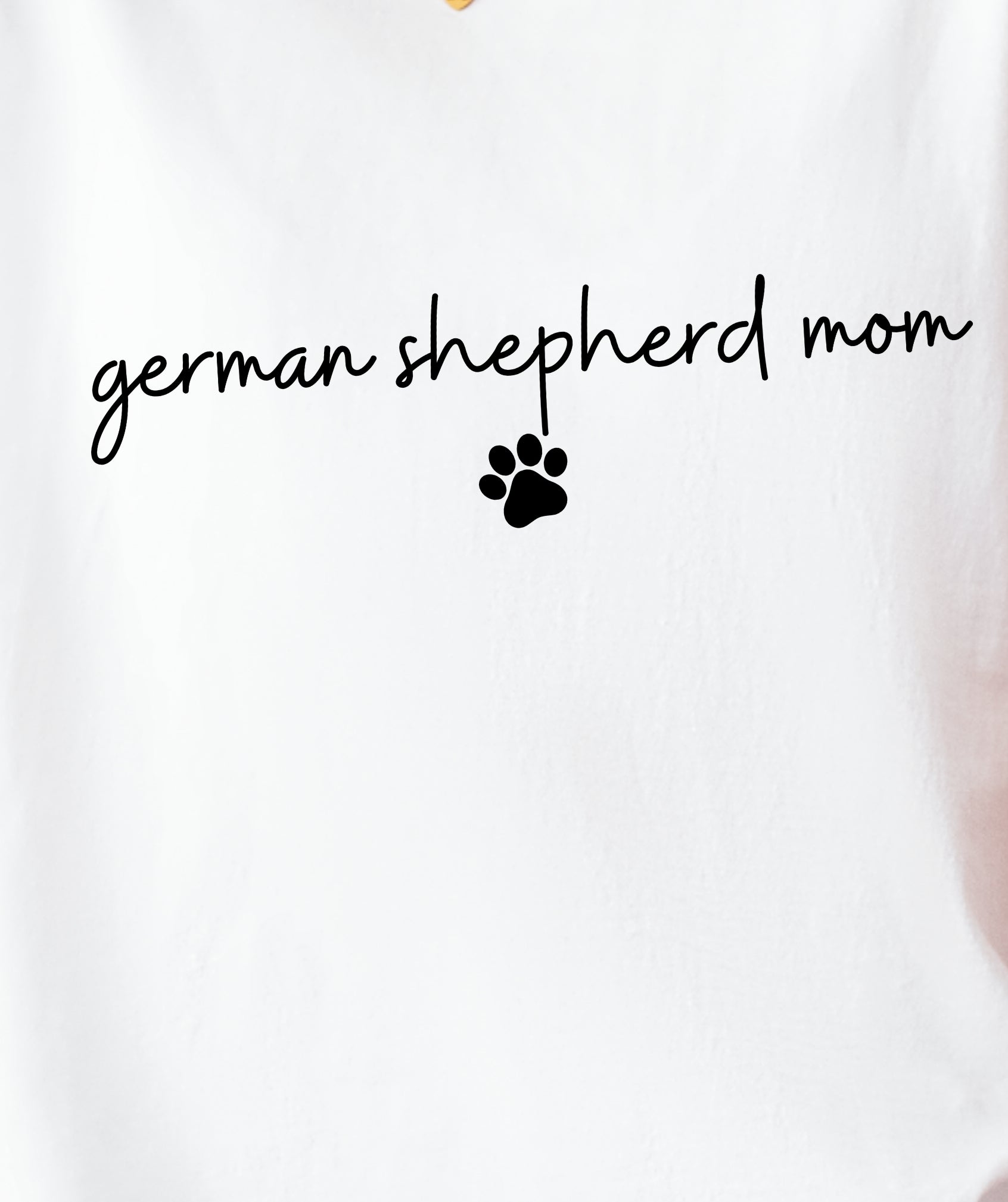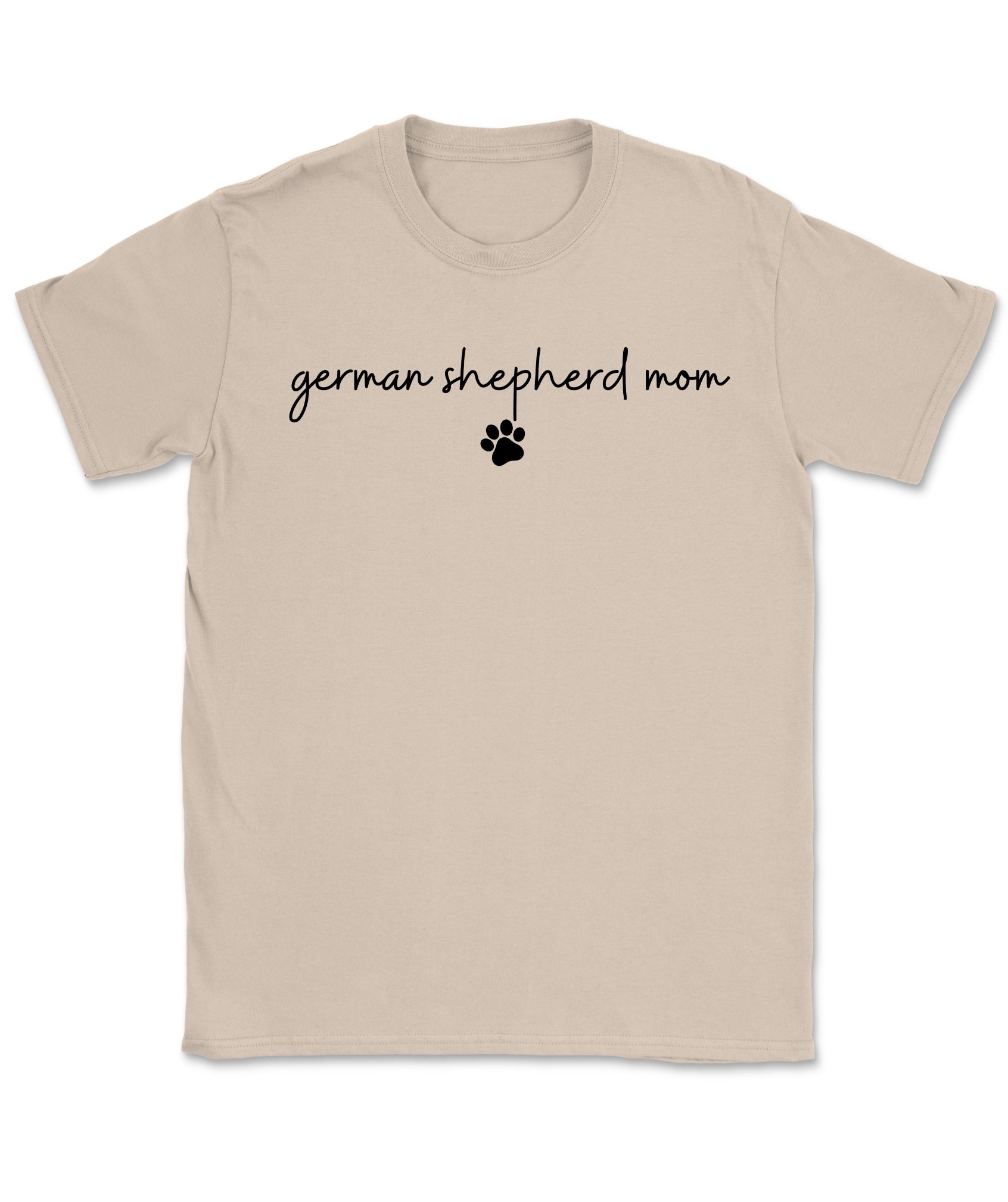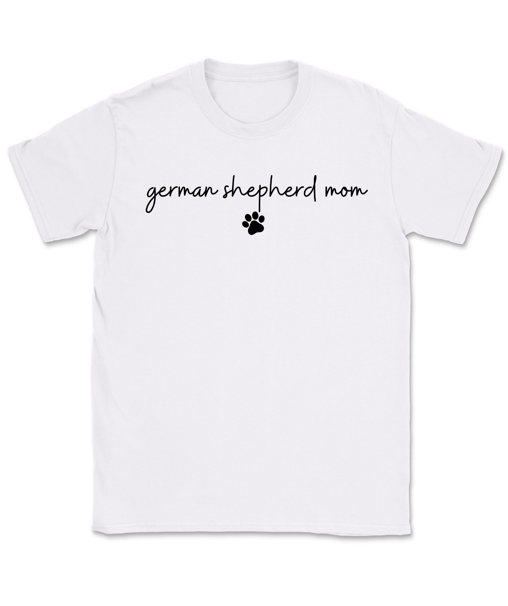 The German Shepherd Mom with Pawprint T-Shirt is for the pup parent who wears her title with pride—and a little pawprint flair. With a handwritten-style font and clean layout, it’s an everyday favorite that keeps your GSD love front and center.