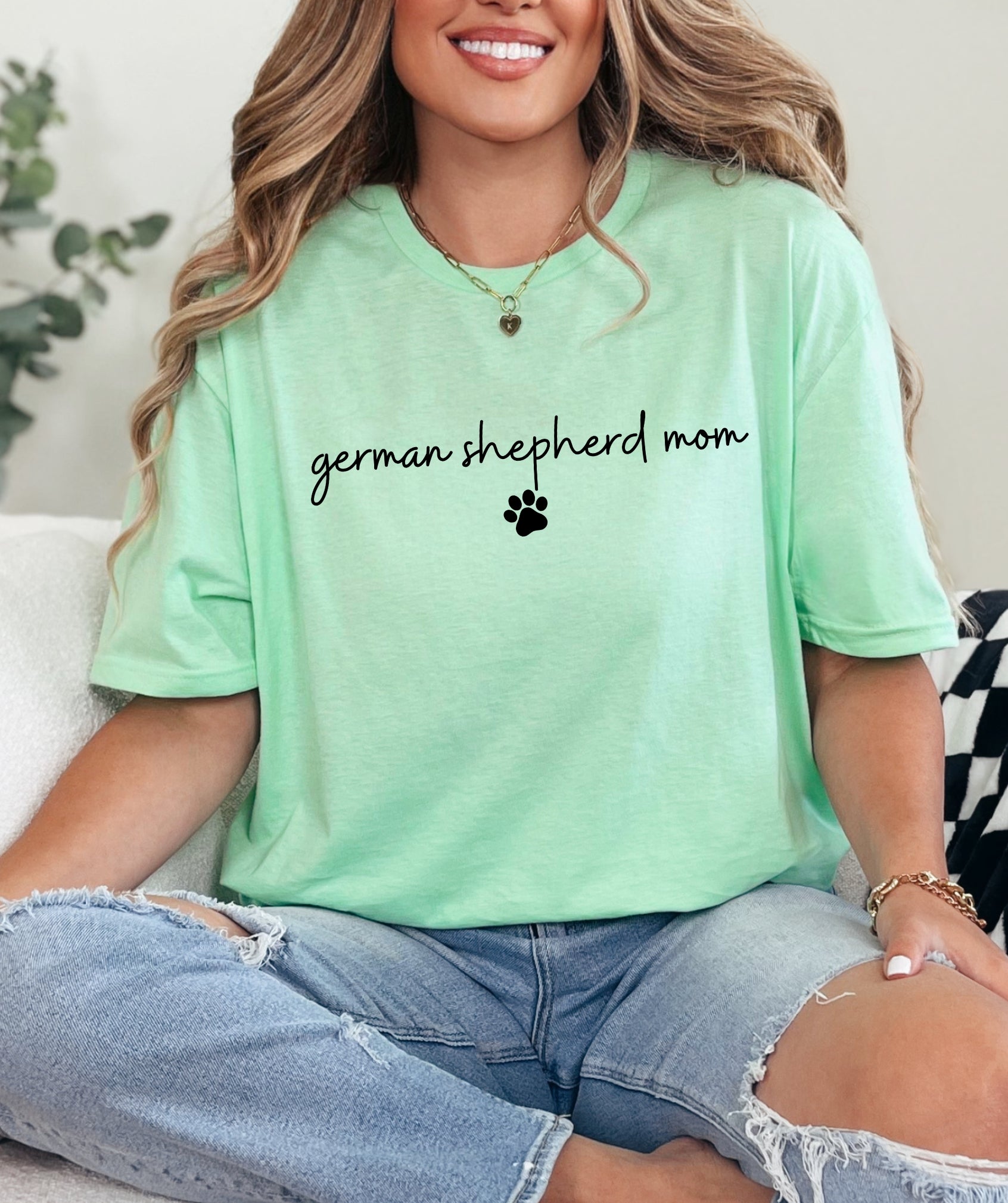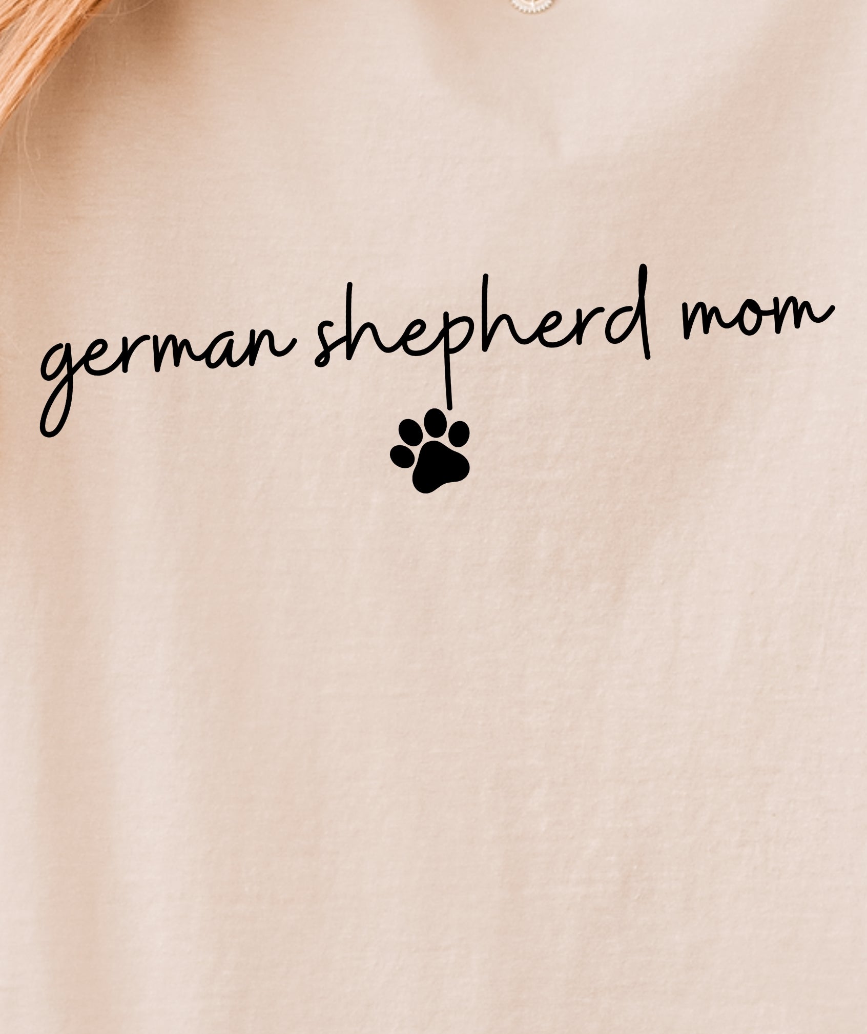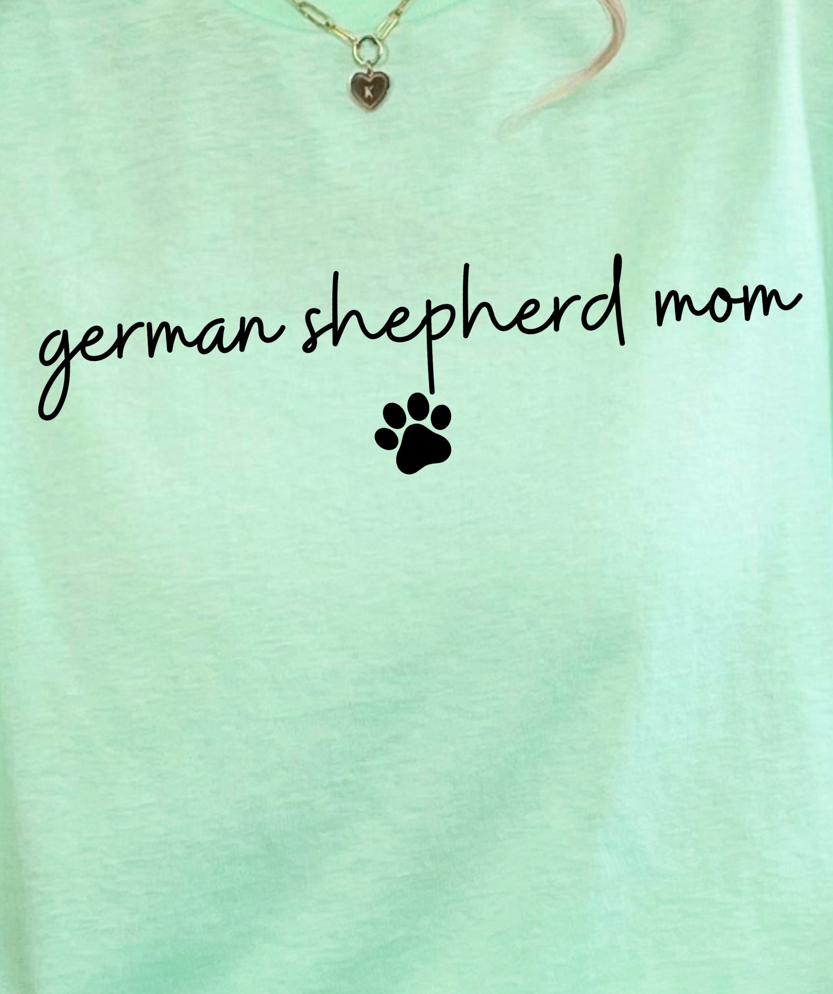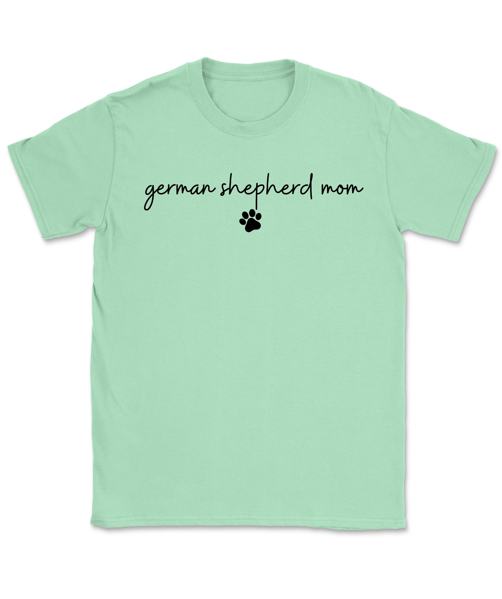 The German Shepherd Mom with Pawprint T-Shirt is for the pup parent who wears her title with pride—and a little pawprint flair. With a handwritten-style font and clean layout, it’s an everyday favorite that keeps your GSD love front and center.