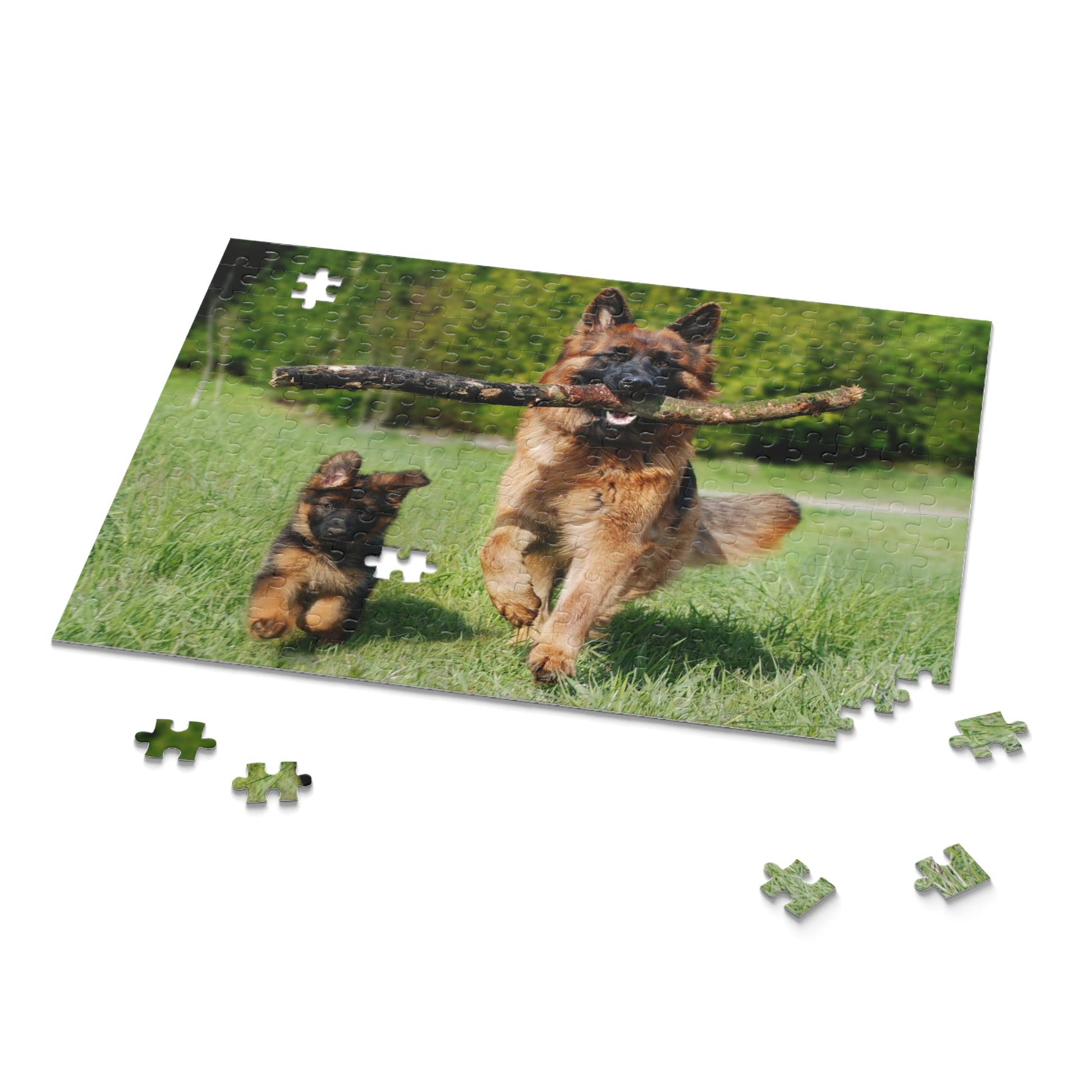 Turn your favorite GSD photo into the ultimate downtime activity. This custom German Shepherd puzzle is perfect for relaxing evenings, family fun, or a thoughtful gift. Each puzzle is made with durable chipboard pieces, finished with a glossy coating, and comes in a gift-ready box featuring your design on the front. Available in 252-piece or 500-piece sizes.