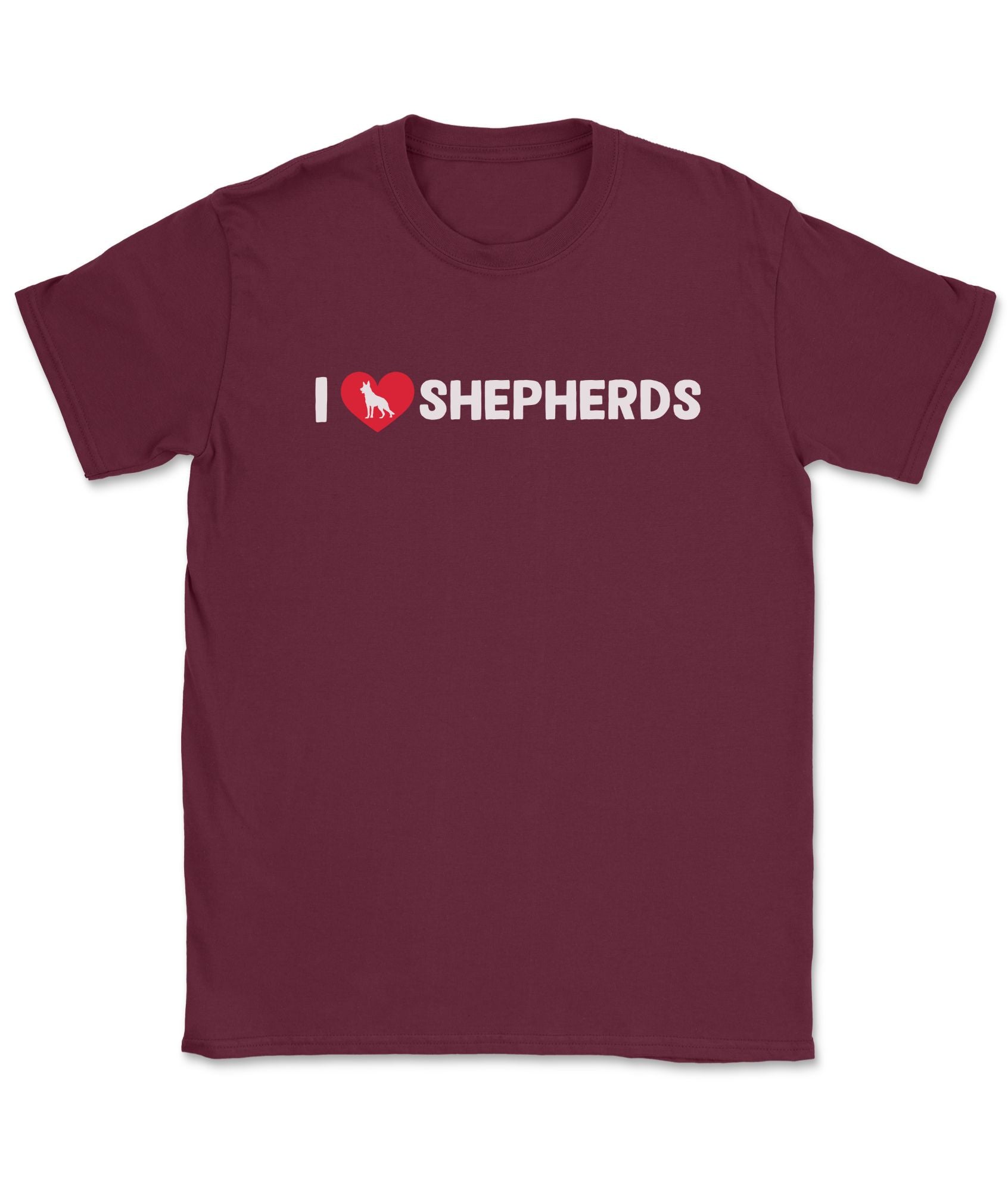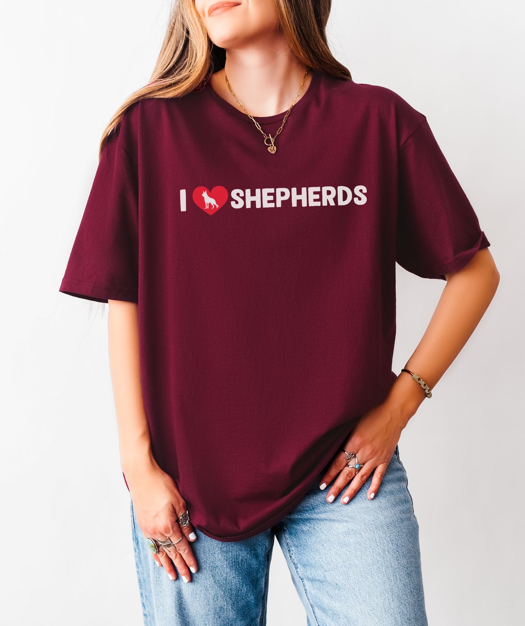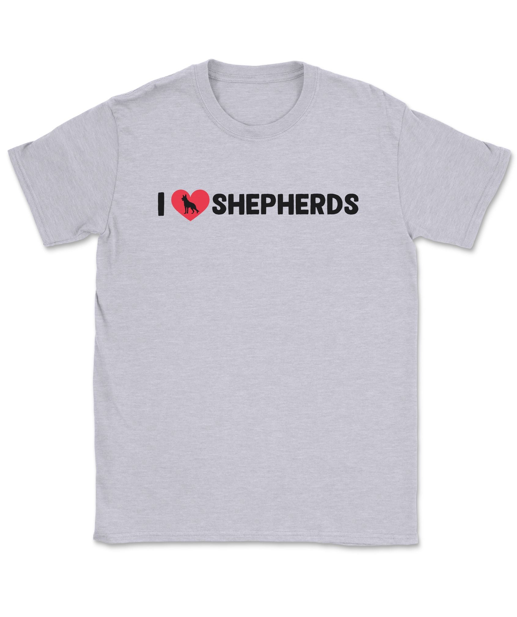 Classic “I ❤️” style design with bold text and a German Shepherd silhouette
