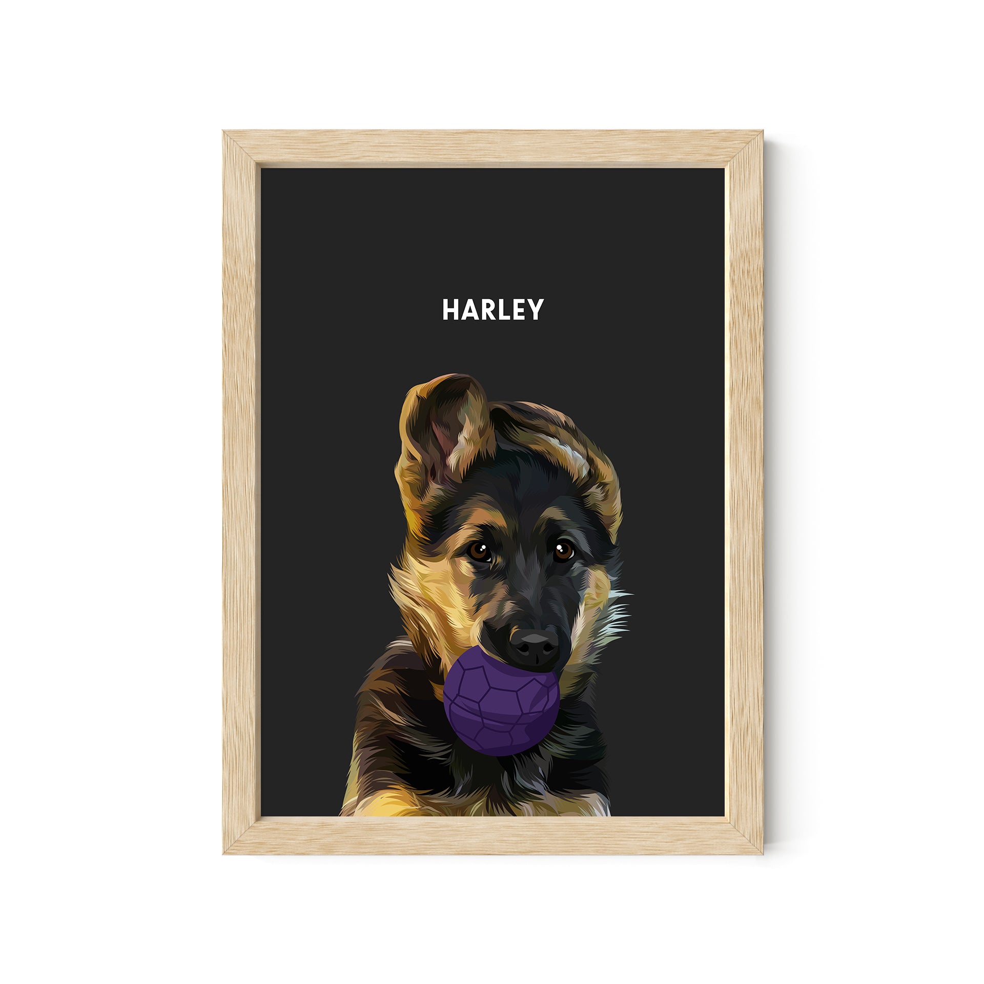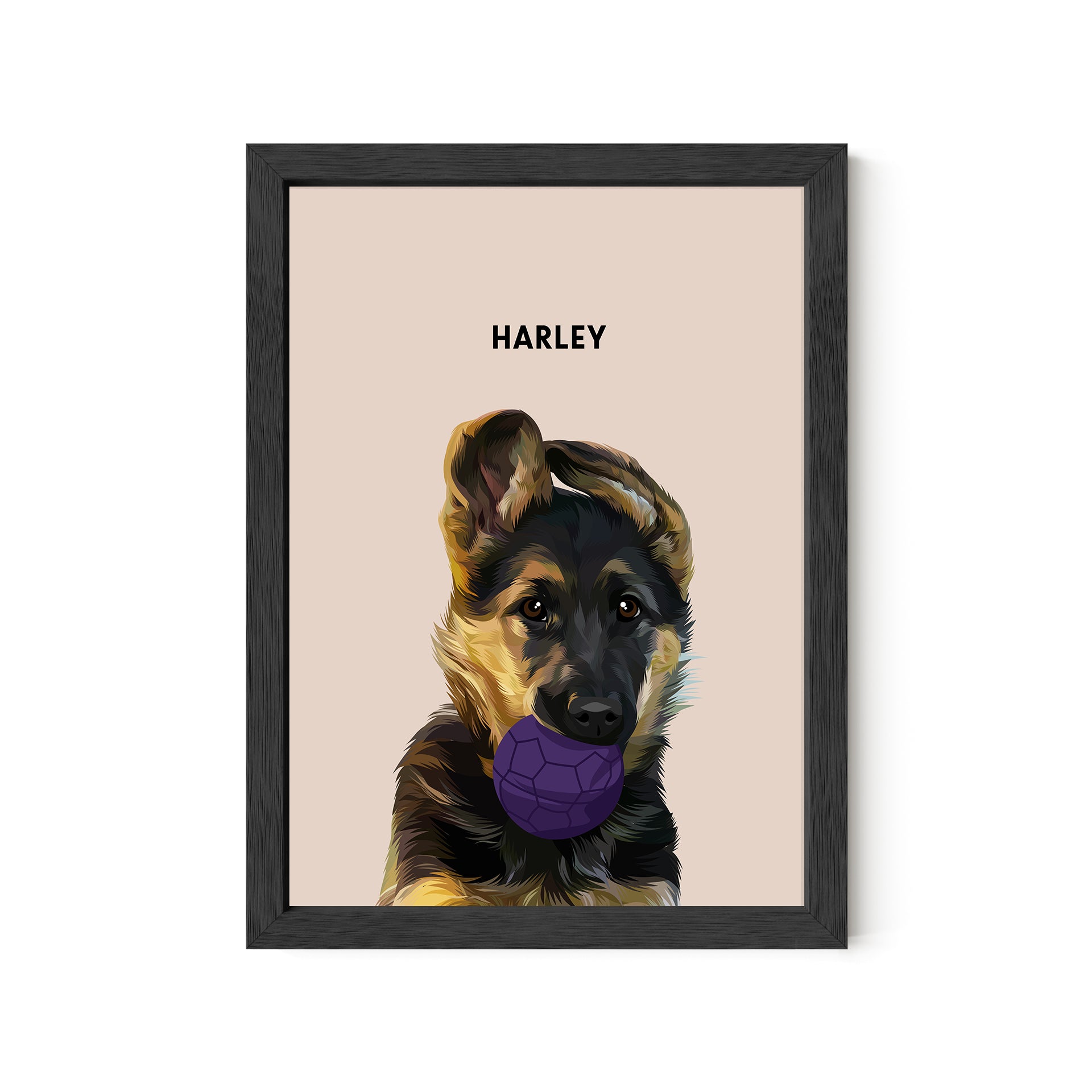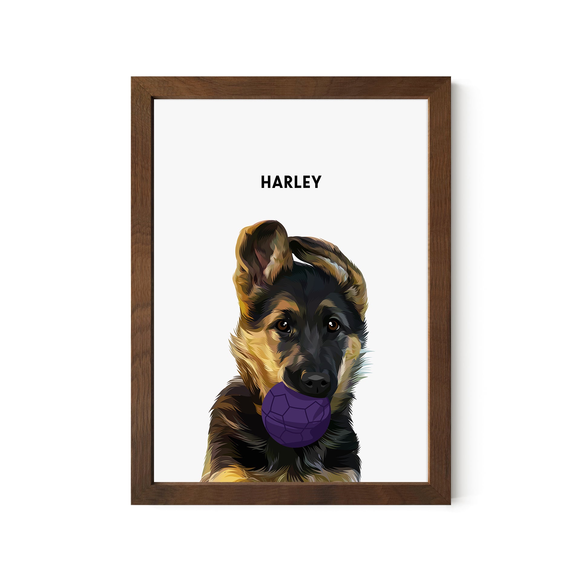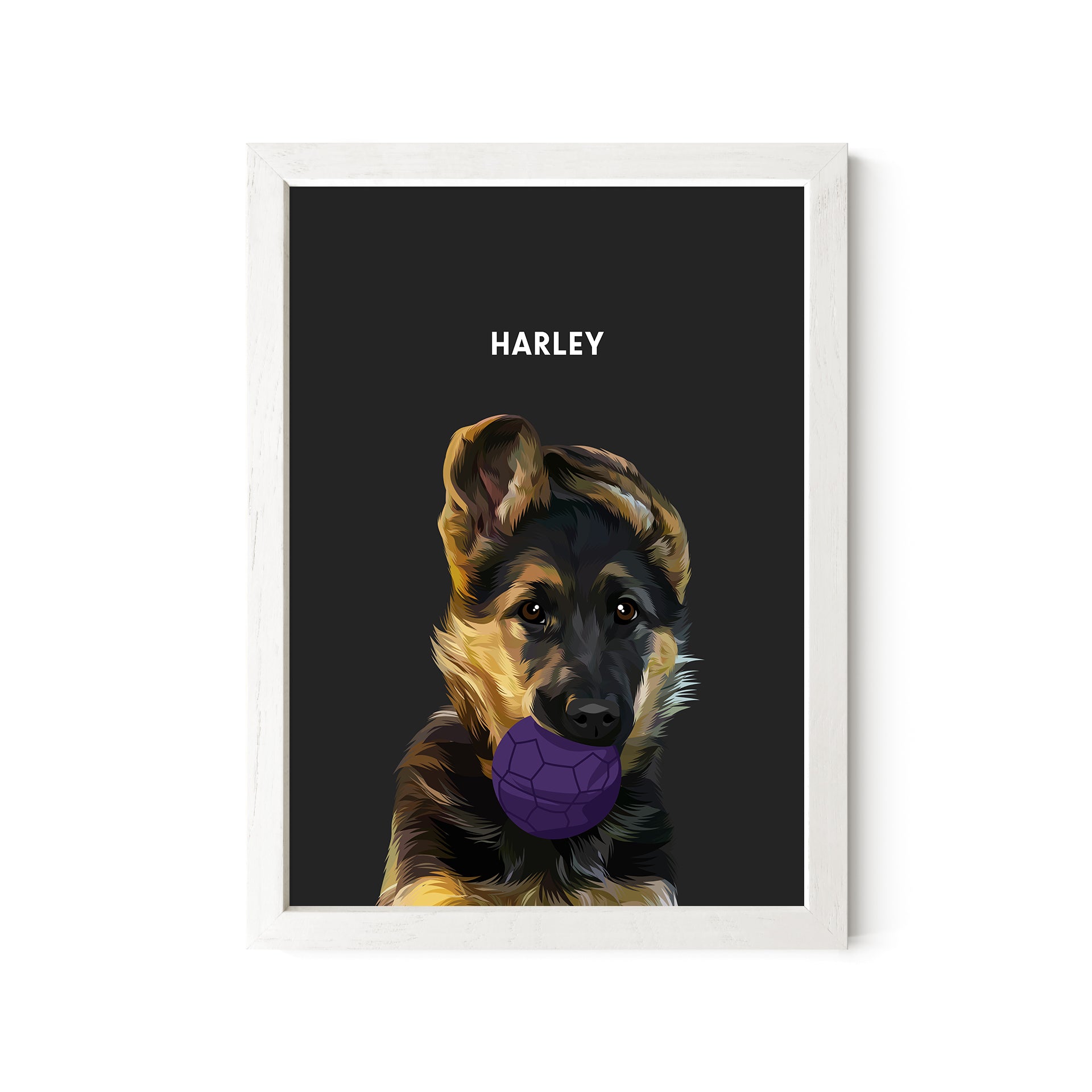 This 5x7 desktop edition transforms your German Shepherd photo into a crisp, illustrated portrait with sleek detail and bold simplicity. Whether you choose charcoal, dusty pink, or soft white, this clean-lined artwork adds modern personality to any desk, shelf, or nightstand—no wall required.