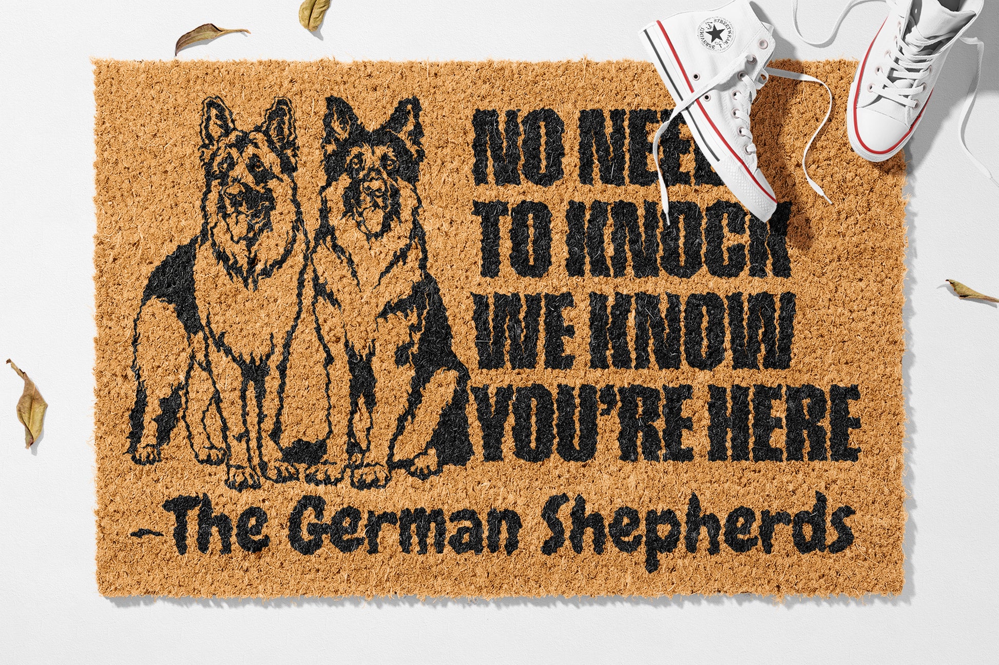 When a pack guards your home, knocking is pointless. Their ears are always up, their noses are dialed in, and they’ve already judged your guest before the first footstep. This funny welcome mat lets your GSDs speak first.
