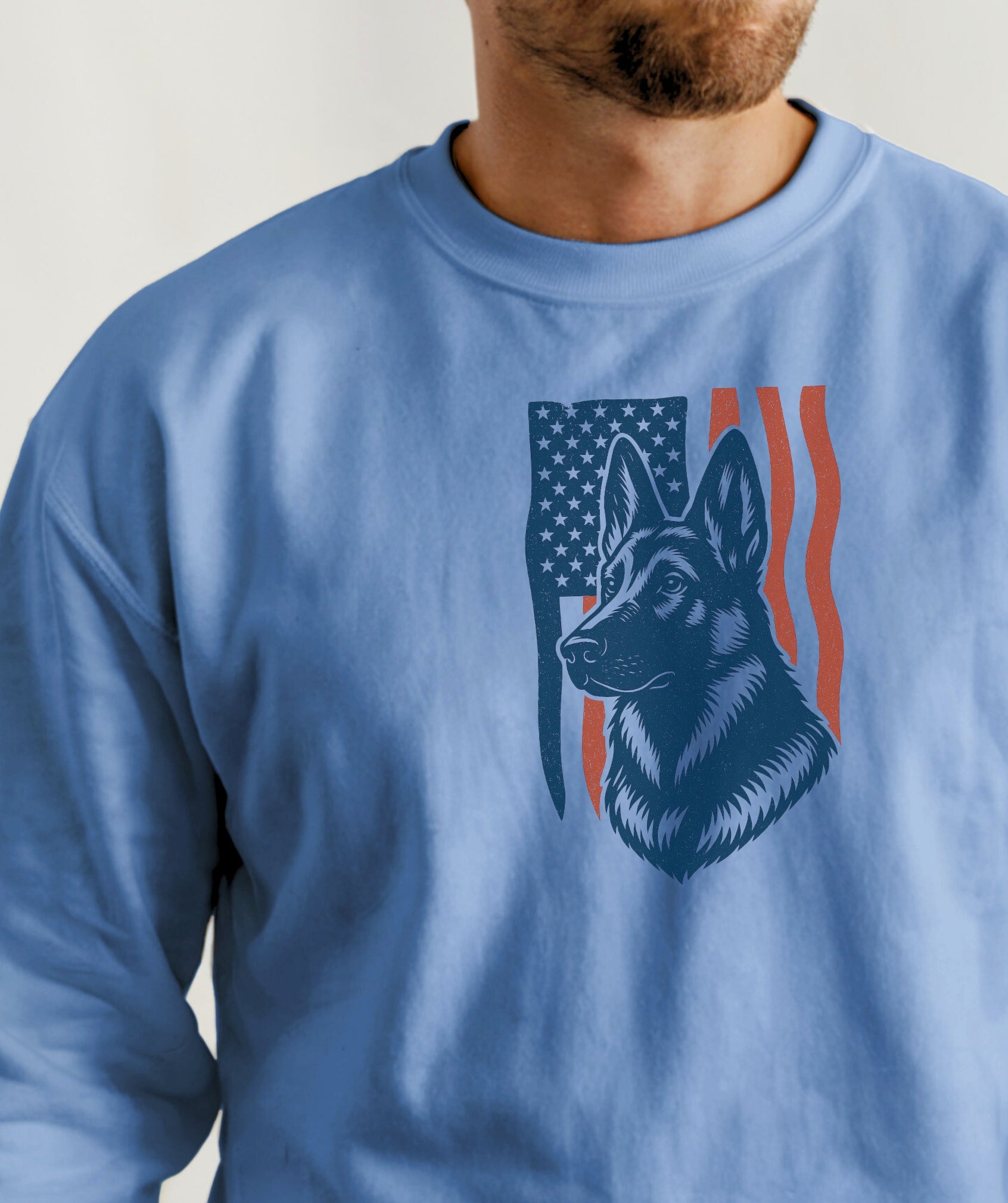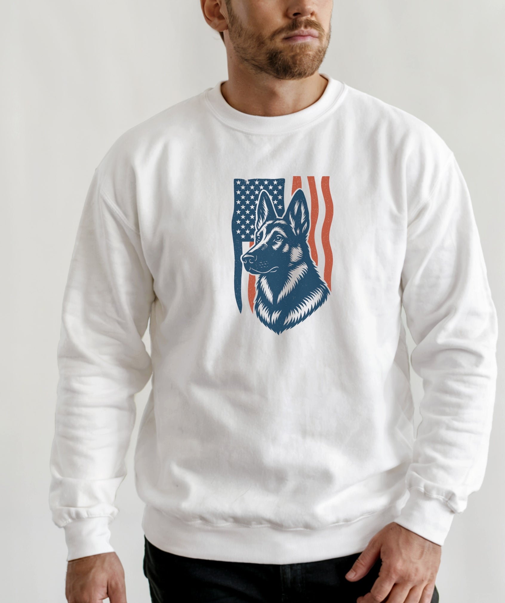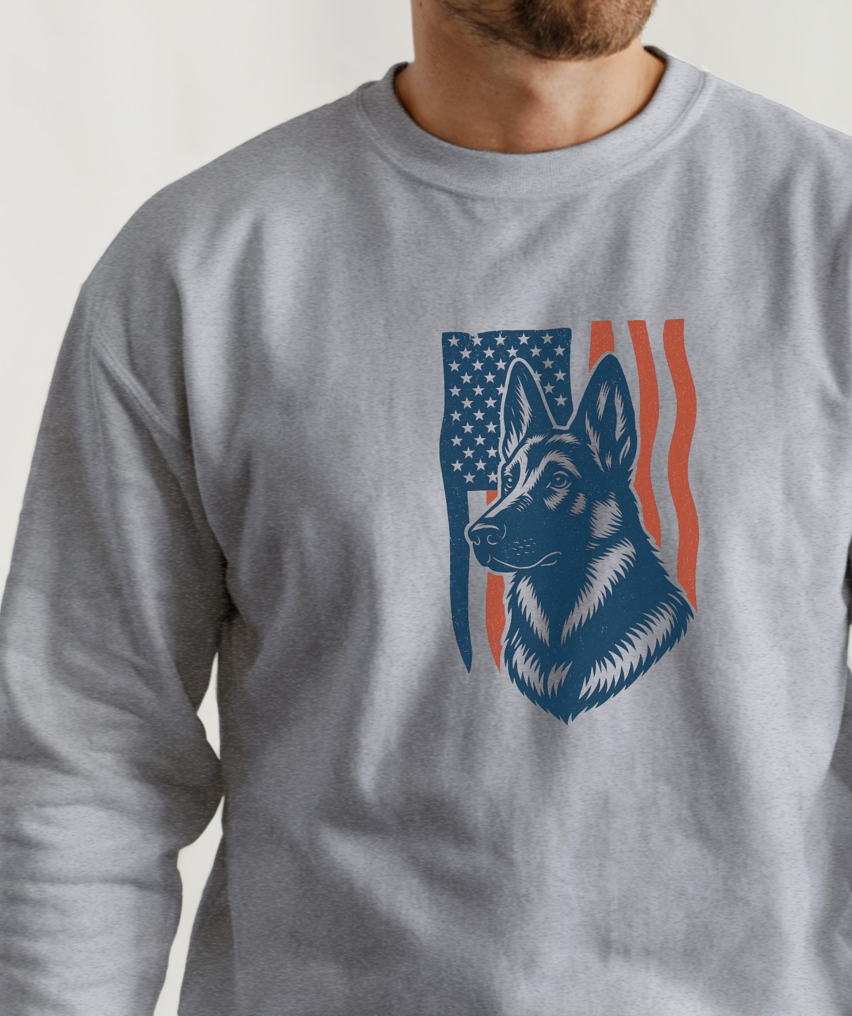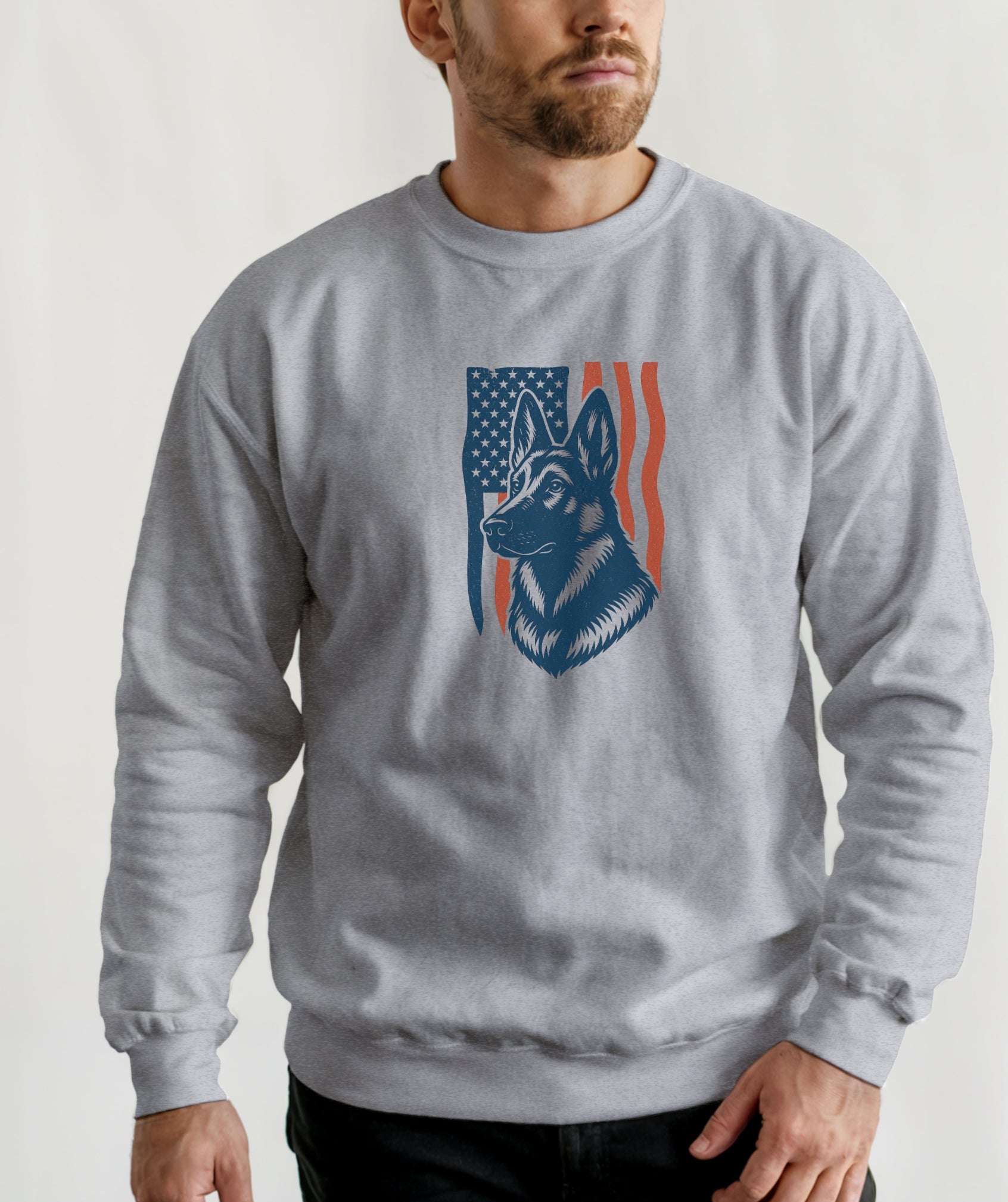 A timeless design meets everyday comfort. This sweatshirt blends American pride with Shepherd loyalty—perfect for barbecues, walks, and cozy evenings with your best friend.
