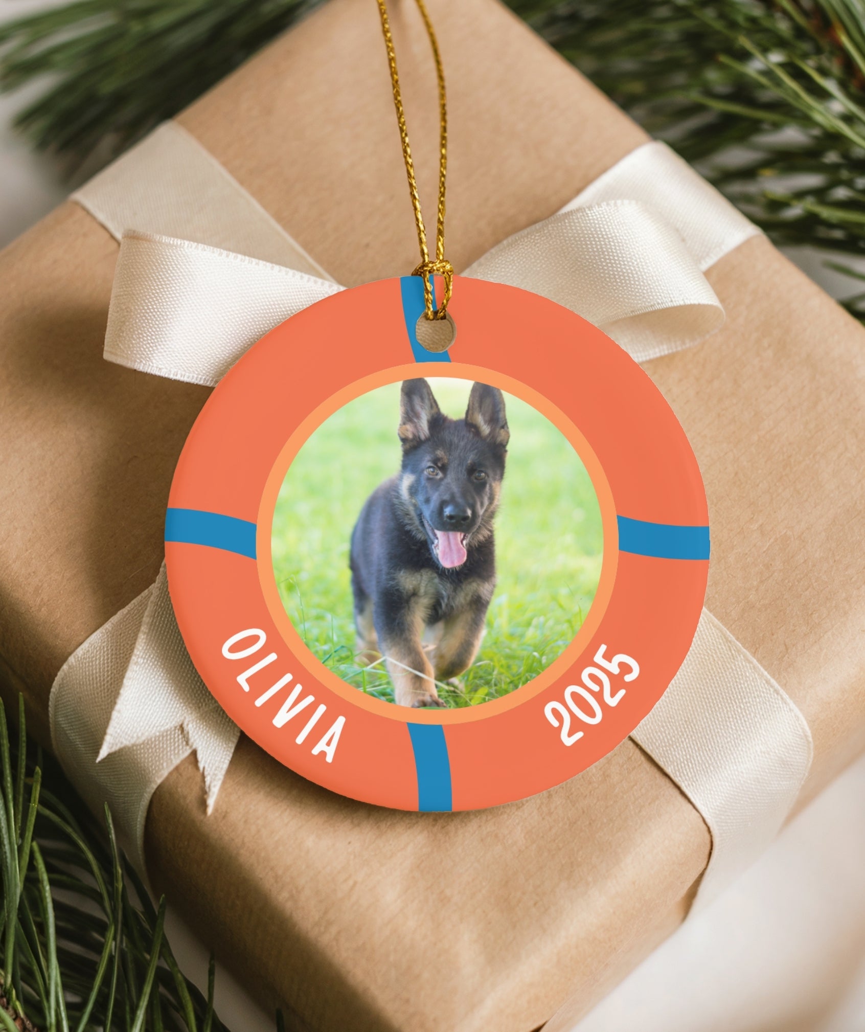 Bring the joy of fetch to your holiday tree with this playful ornament. Personalized with your Shepherd’s name and photo, it’s a cheerful tribute to their favorite ball.