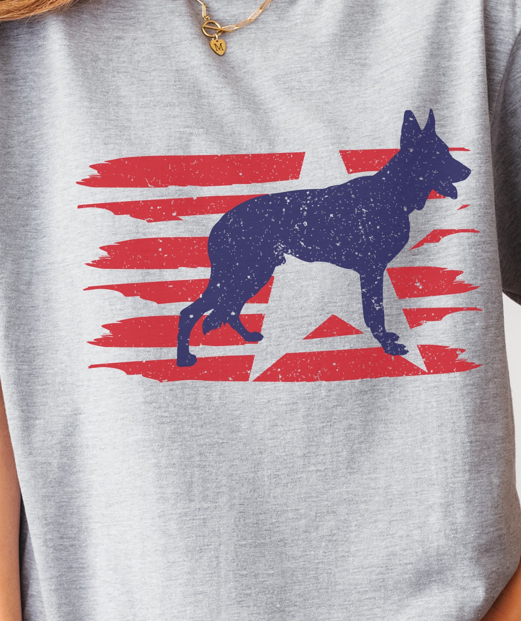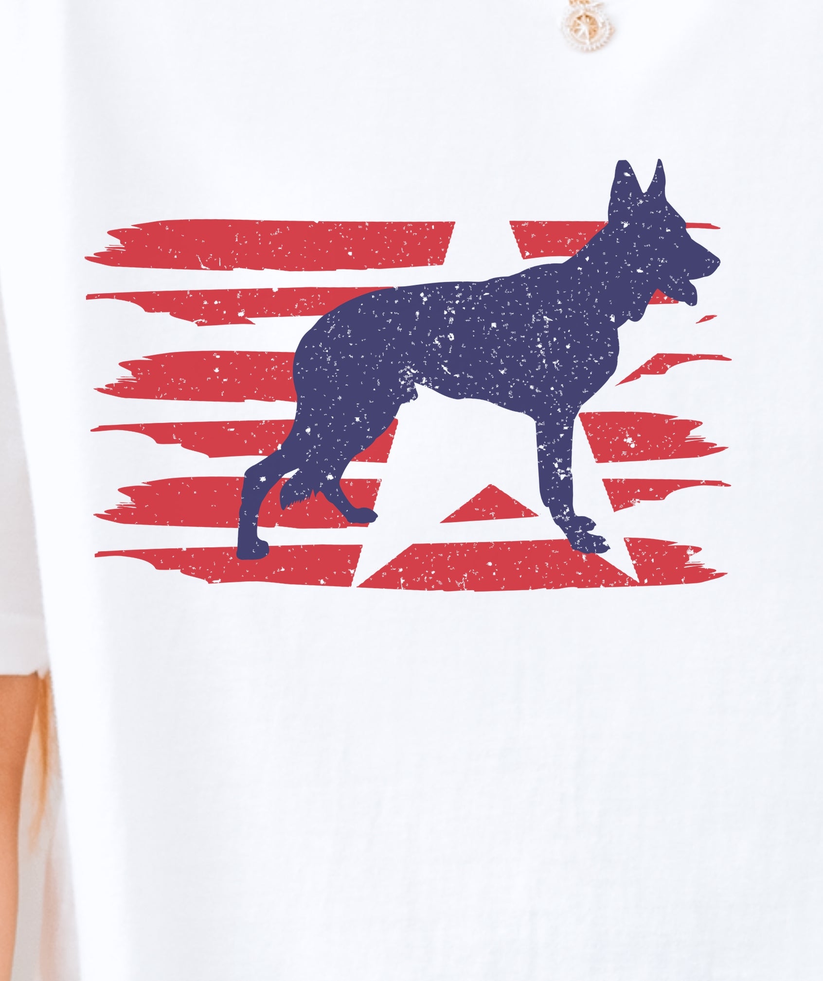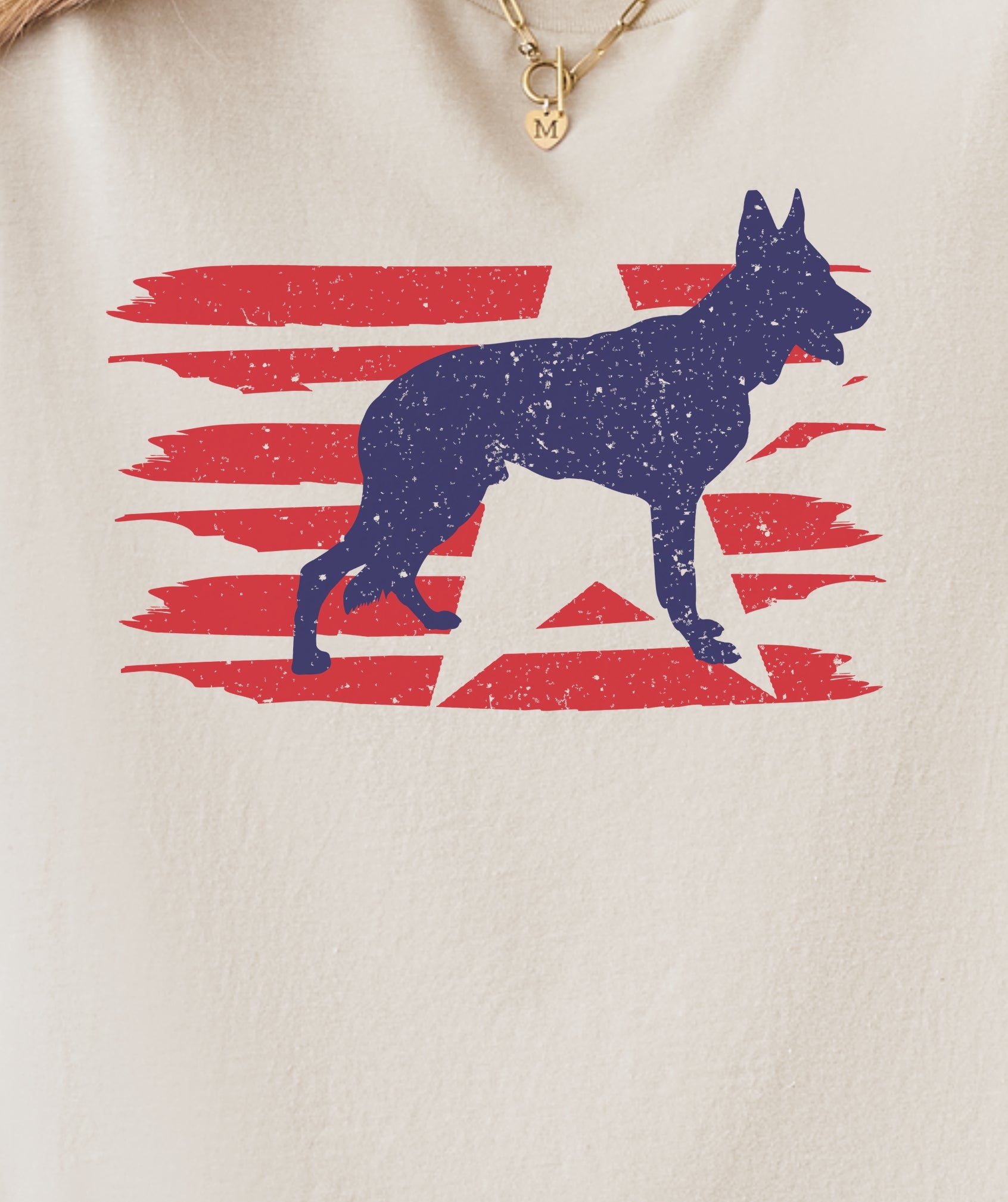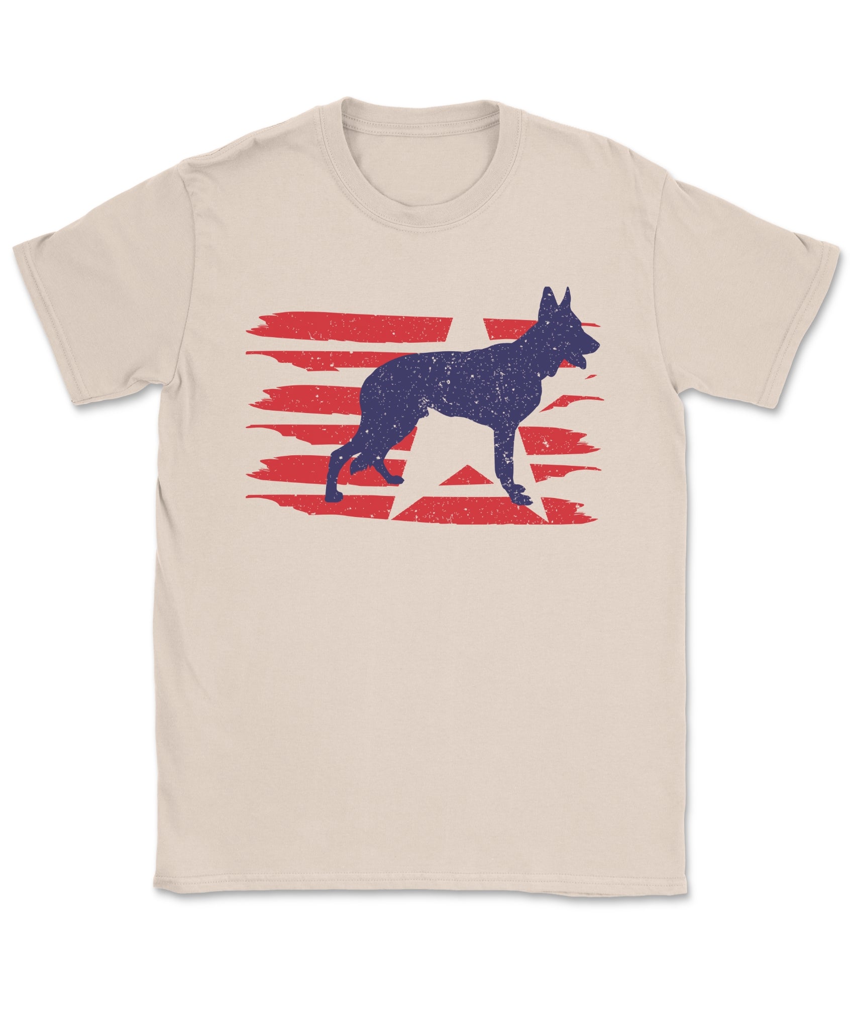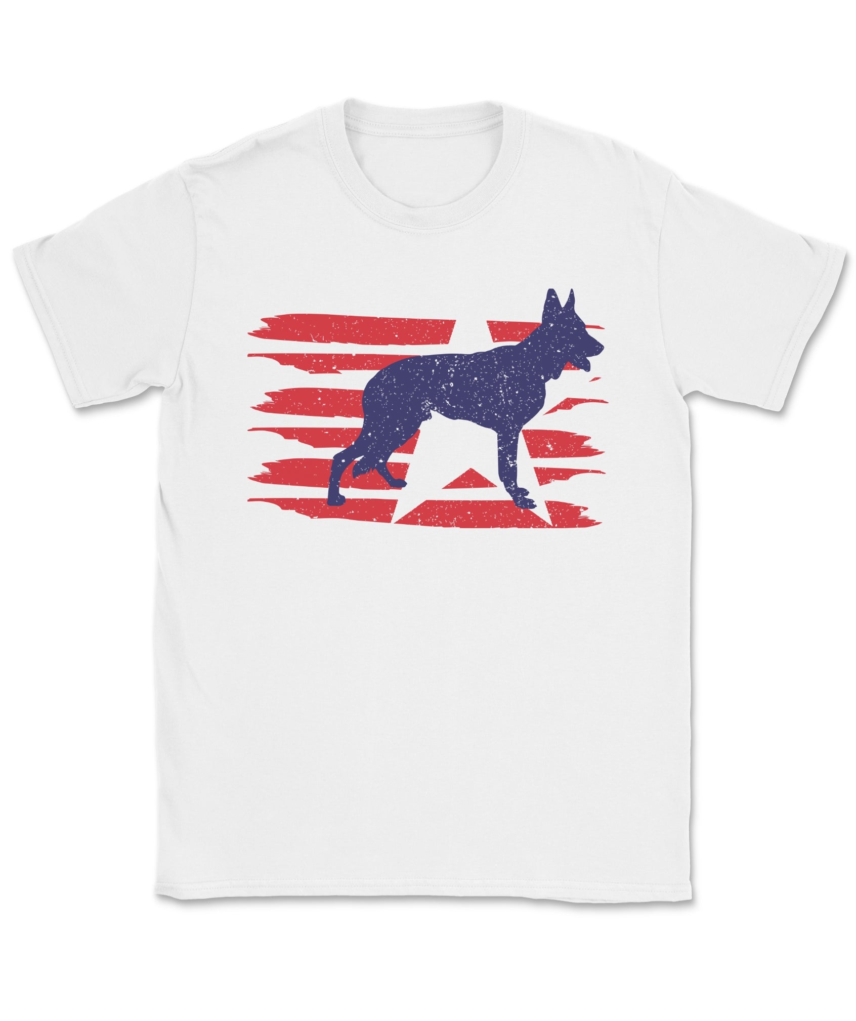 Stylized U.S. flag and German Shepherd silhouette with modern patriotic vibes