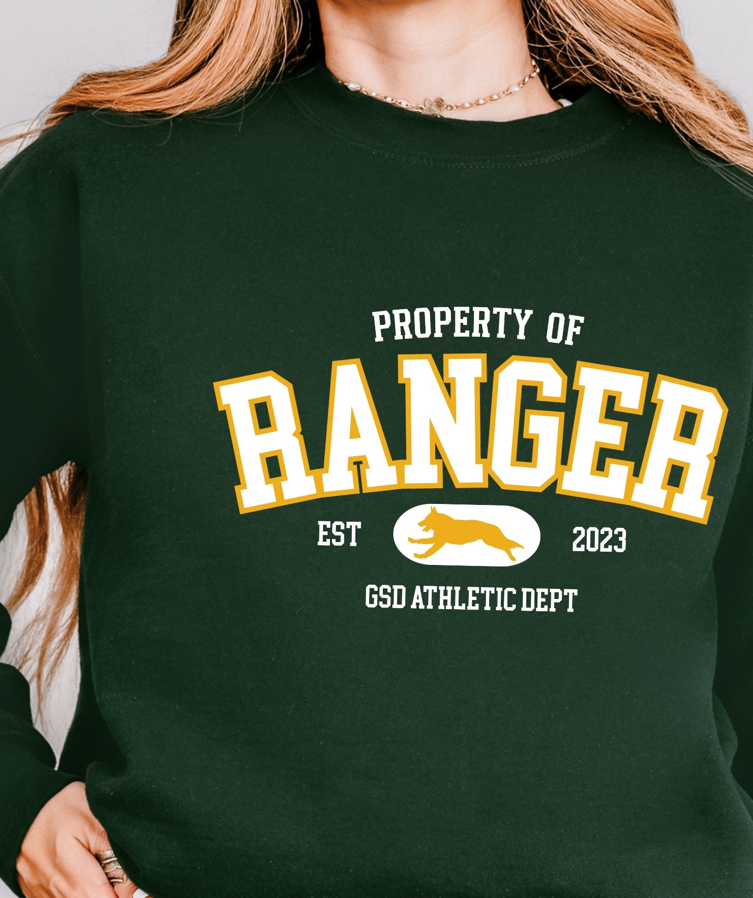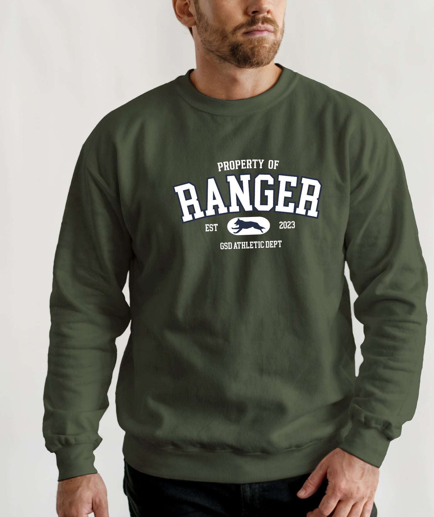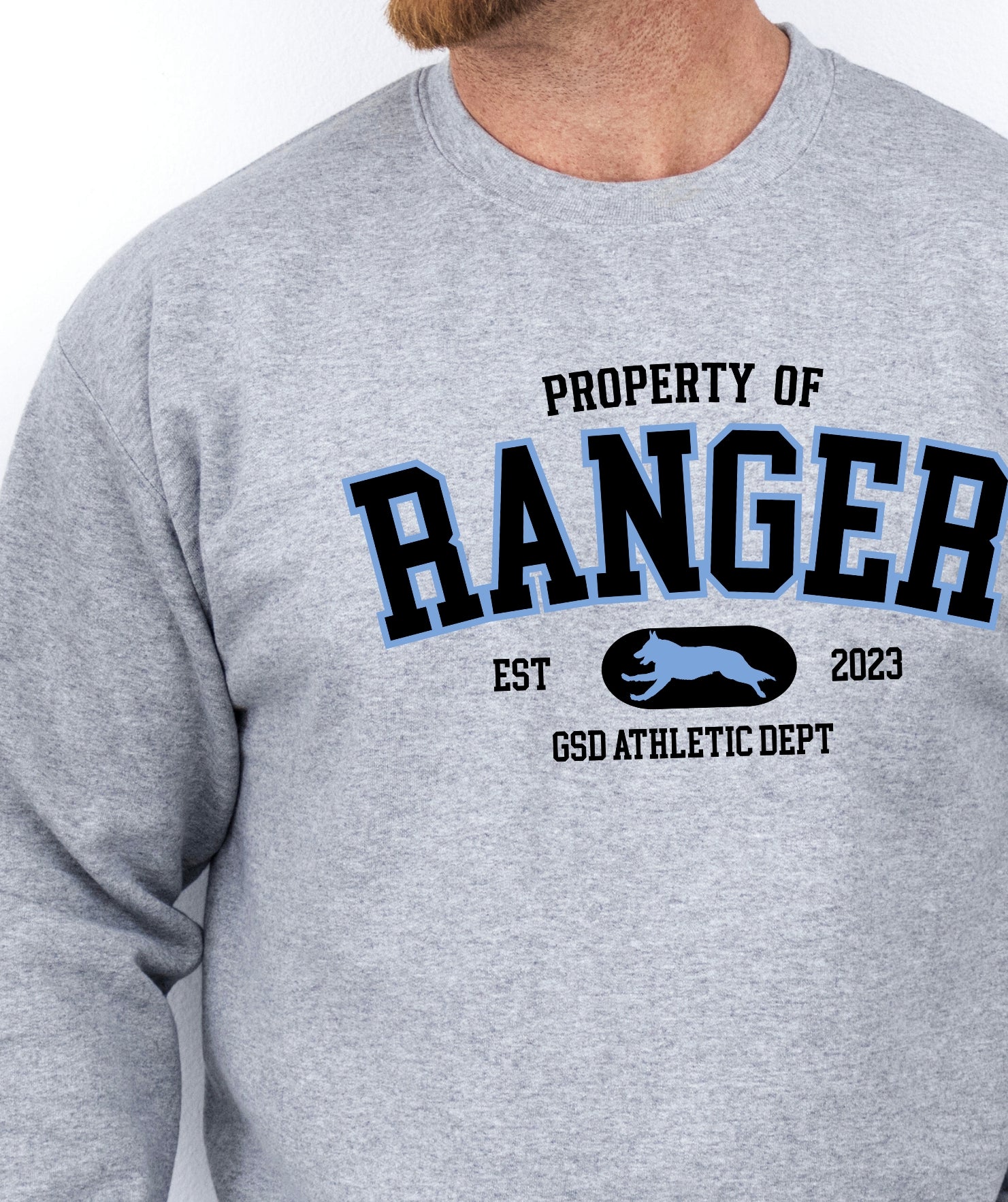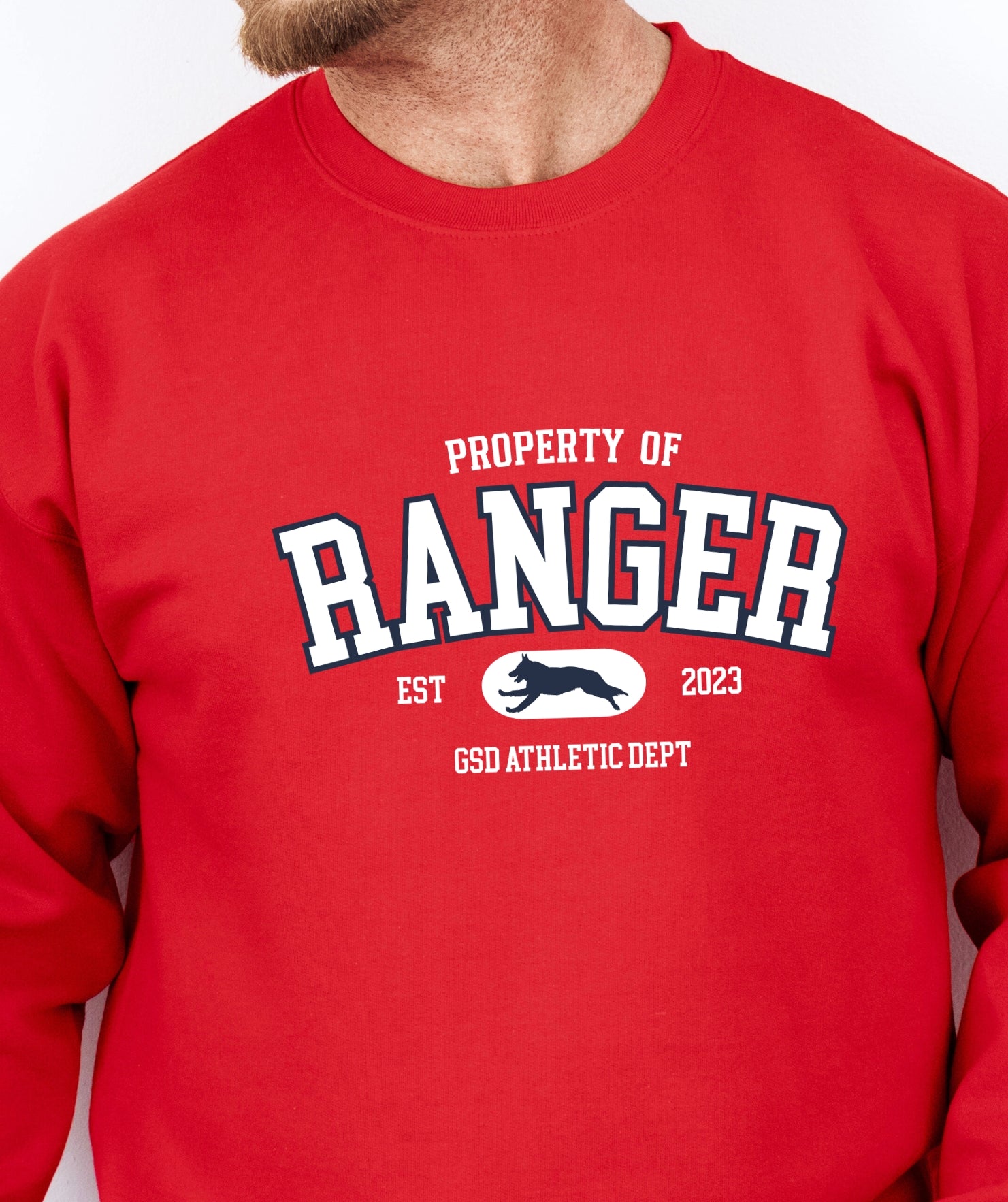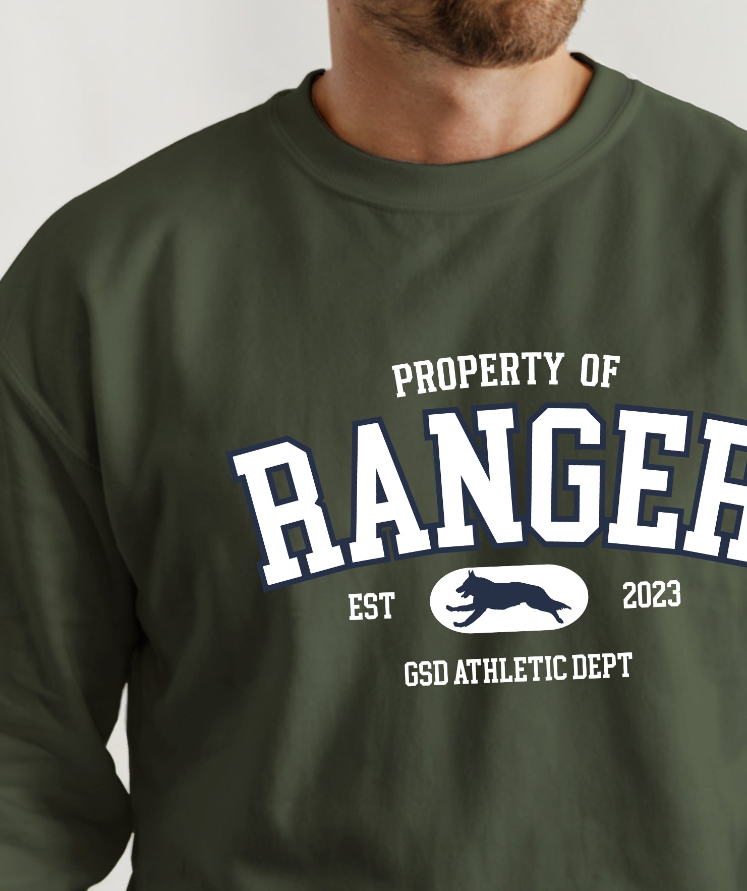 Your Shepherd’s got game, and now you do too. The “Property Of” sweatshirt features bold collegiate lettering, a classic athletic design, and your dog’s name and birth year for a personal touch. A must-have for every proud Shepherd fan.