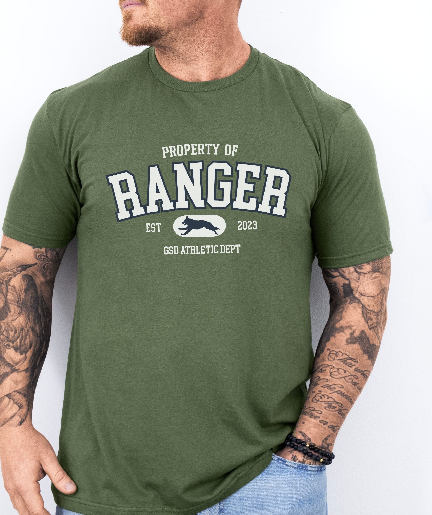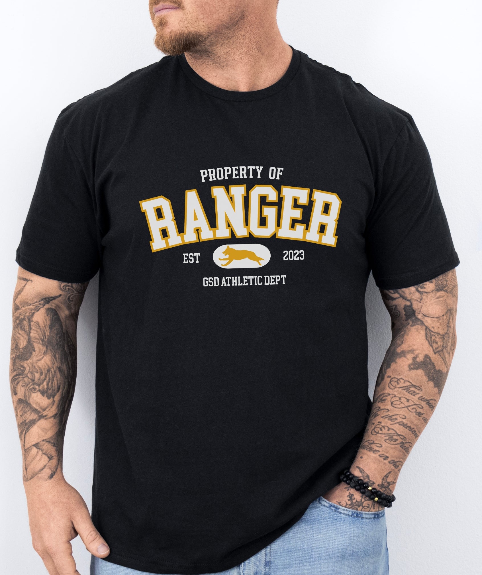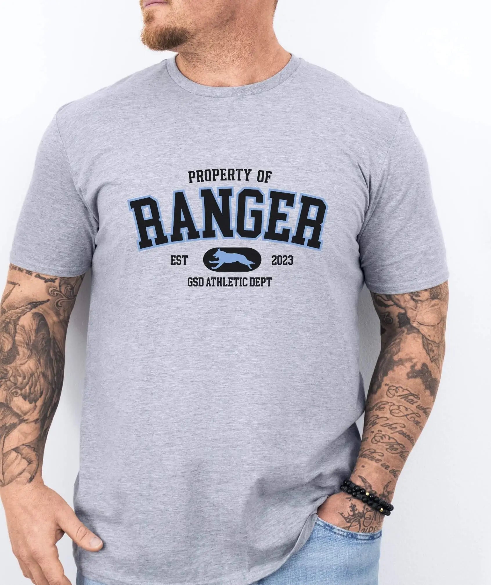 Personalized German Shepherd athletic-style shirt with your dog’s name and birth year